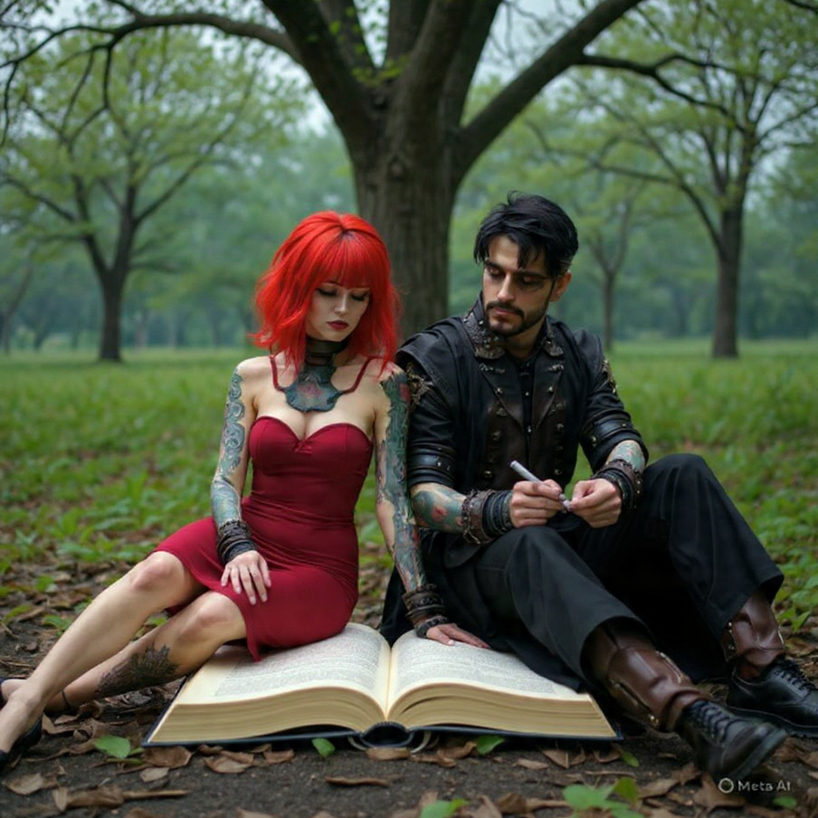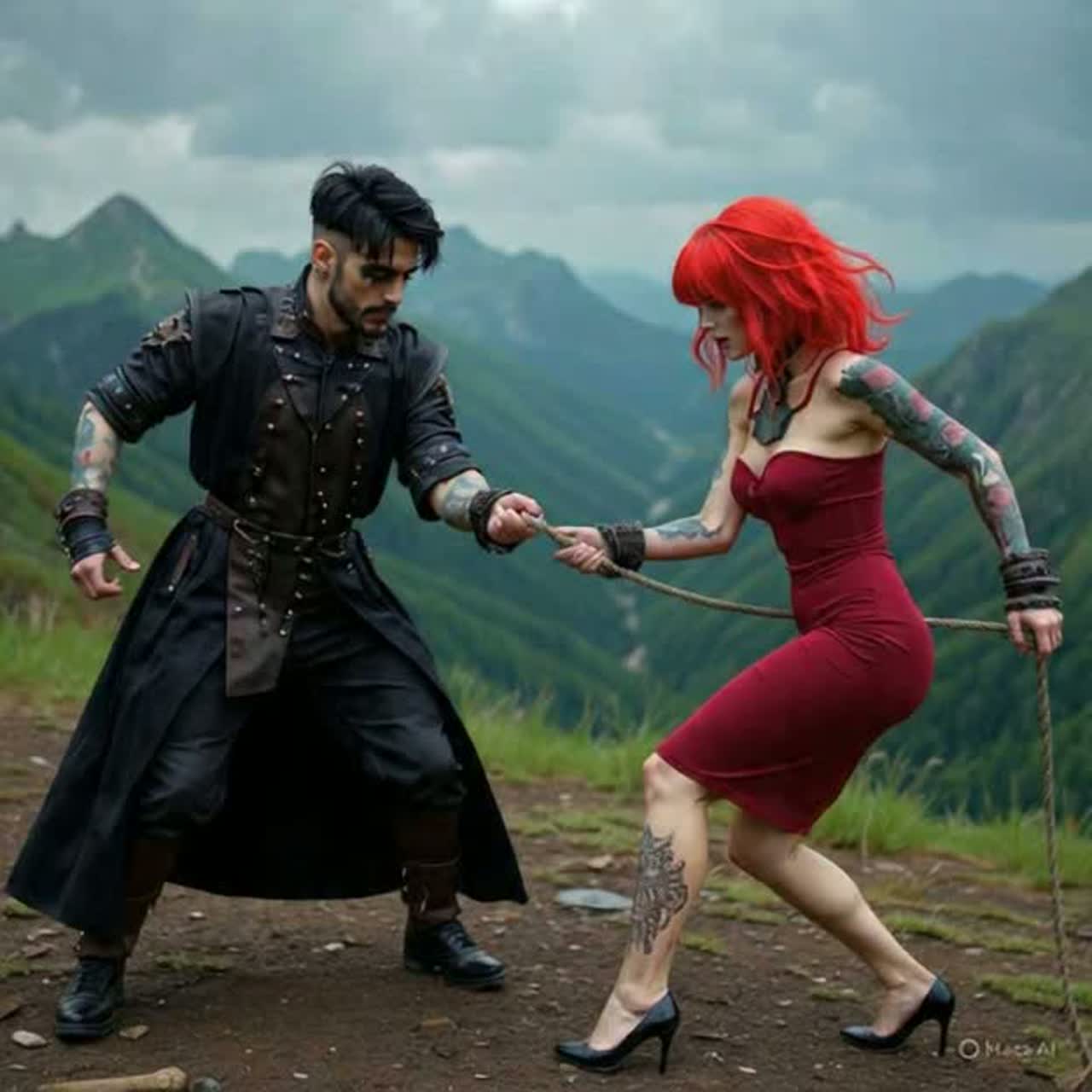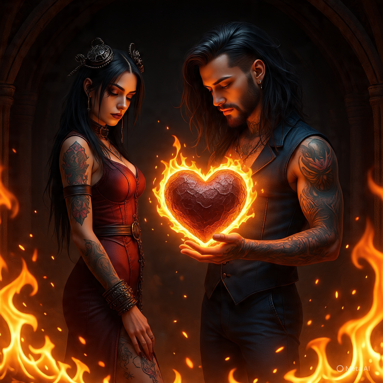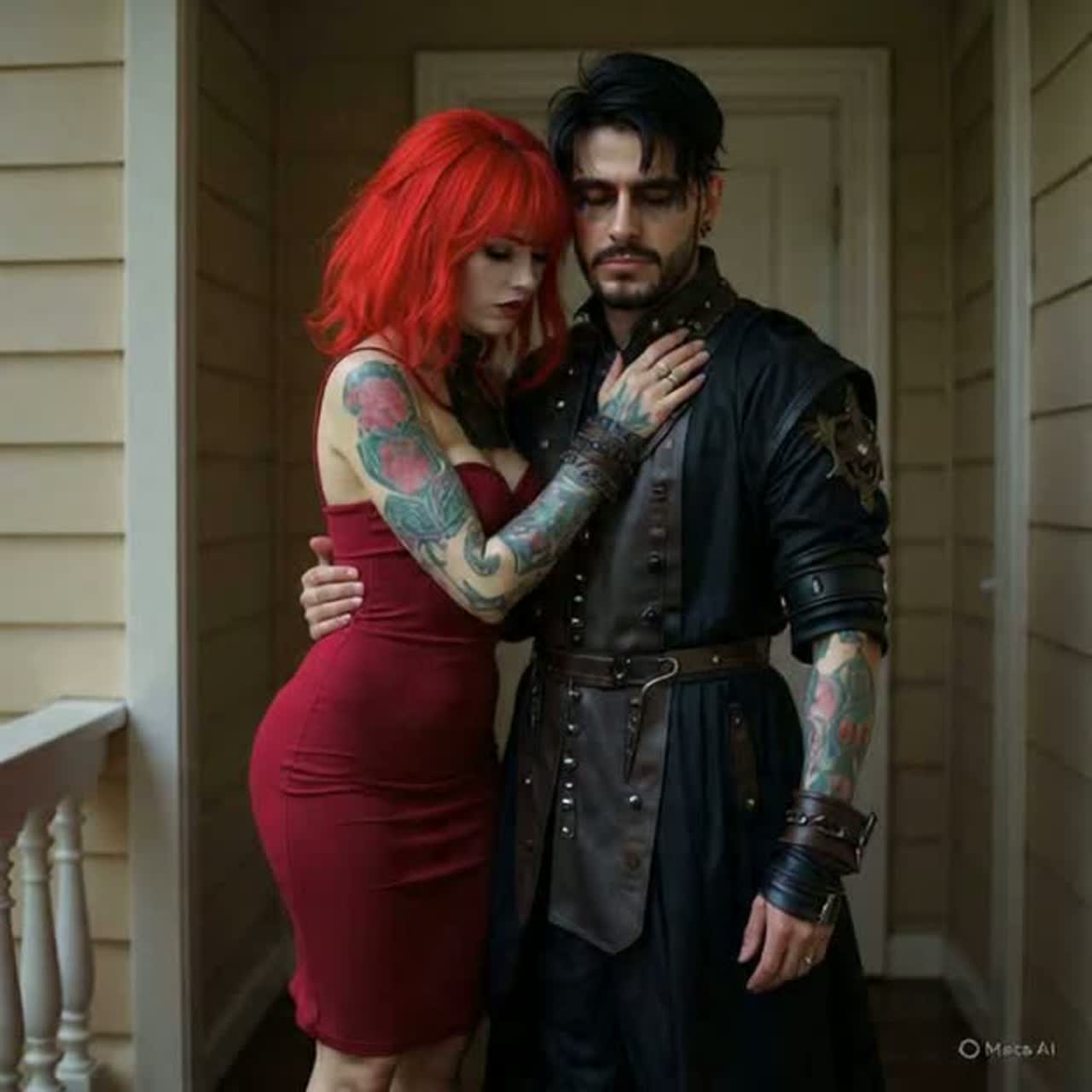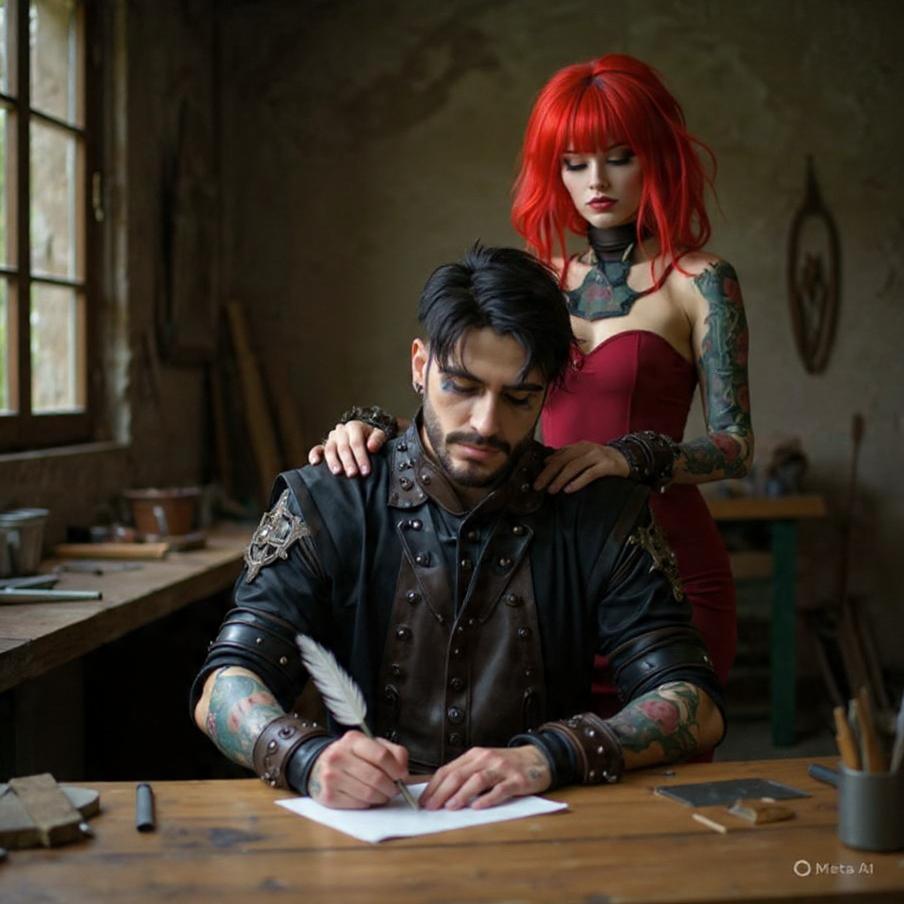 Acoustic guitar, metalcore, rap, passionate, power ballad, emotional, tempo shifts, duet male and female, Duel singing