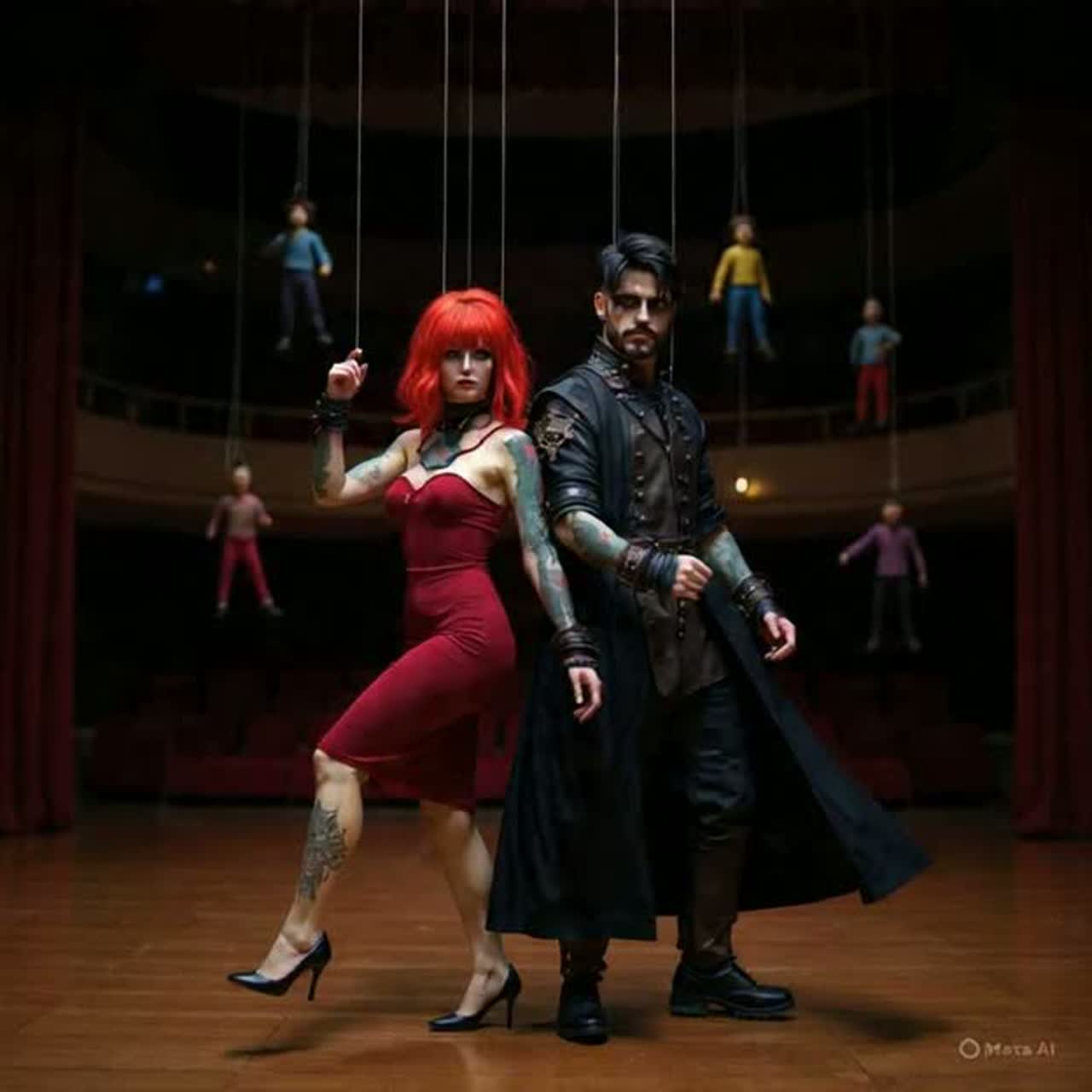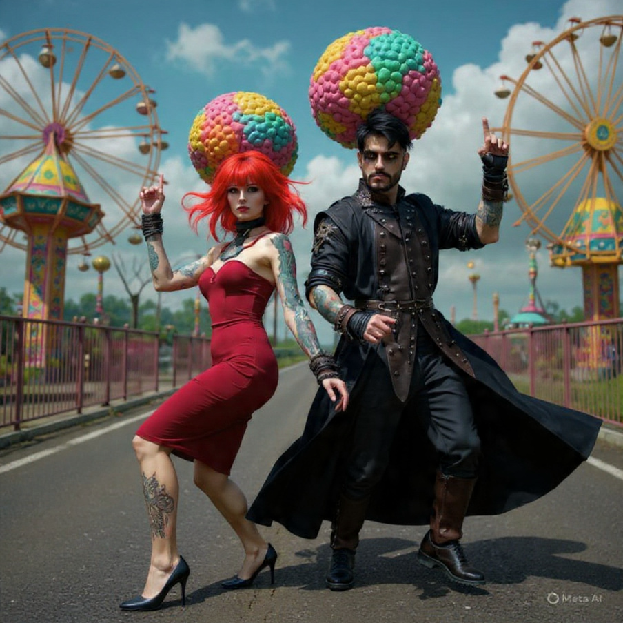 Power ballad, gothic symphony, upbeat orchestra, metalcore, EDM, rap, erratic tempo shifts, genre fusion, duel singing, duet male & female