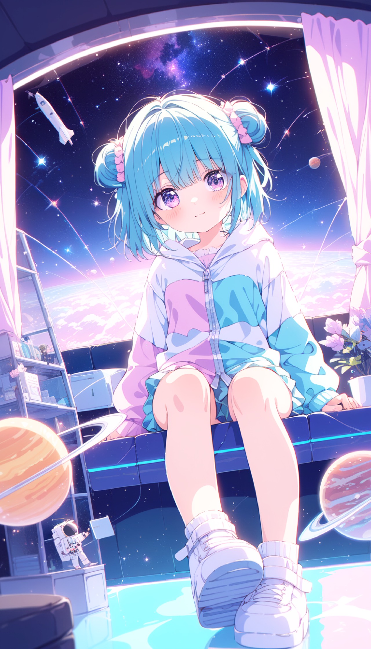 Dream Pop × Space Pop with a 90s anime opening feel, Tempo BPM95–110, creating a soft, weightless atmosphere, The intro features lush synth pads, bell tones, and gentle arpeggios with wide stereo and long reverb for a cosmic space feel, Verses are minimal and airy, focusing on vocals with soft synth chords and light textures, Drums remain subtle, using soft kicks or light electronic percussion to maintain a floating rhythm, Pre-chorus gradually builds with expanding chords and layered sounds, The chorus blooms smoothly with airy harmonies, echo effects, and ambient layers, avoiding sharp impact, Add soft delayed guitar or synth leads for nostalgic color, with no heavy distortion, Use mostly major keys with suspended chords for a bittersweet tone, Outro fades into ambient space like starlight, Mood: ethereal, nostalgic, emotional, cosmic