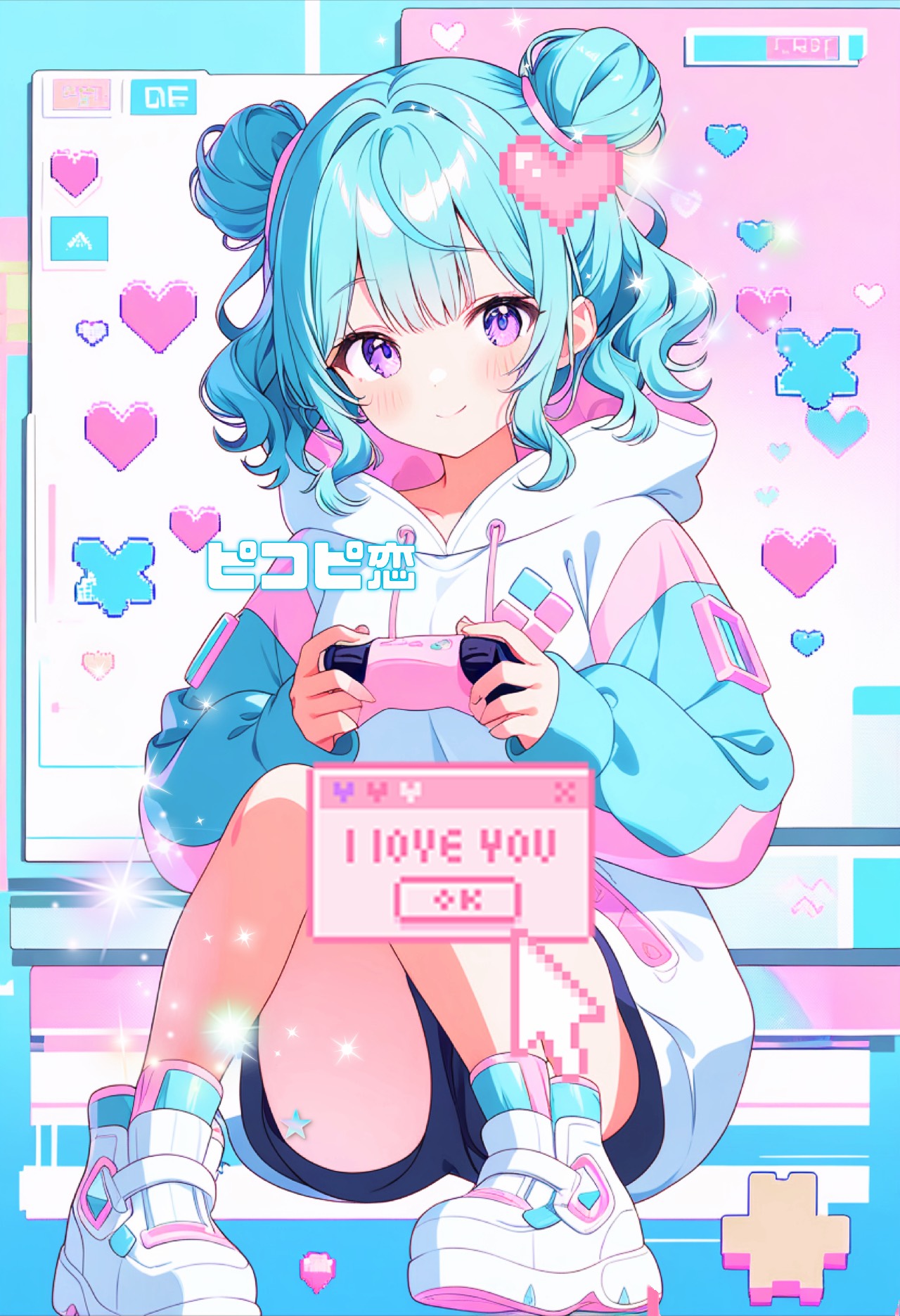 Create a cute, kawaii J-POP song with high-pitched female digital vocals (VOCALOID-style), No guitars — use sparkling, piko-piko chiptune sounds, playful electronic synths, light piano, rhythmic claps, and upbeat electronic beats, Theme: a girl’s honest love that is pure and reaches everyone’s heart, Even though her love is for one person, everyone supports her, turning her feelings into shared joy, Lyrics inside quotation marks 「」 must be sung loudly and shouted with strong emotion, layered with 2–3 female harmonies to create a rich, thick, sparkling choir-like effect, The chorus should be catchy, full of layered female shouts and harmonies for a bright, energetic live vibe, Tempo around 135 BPM, key in A major, with sparkling modulations and vibrant arpeggios, Add glittering chiptune layers and twinkling synth textures, End the song with a soft, playful fade-out using only piko-piko digital sounds, Overall mood: playful, innocent, heartwarming, full of kawaii charm, and unmistakably