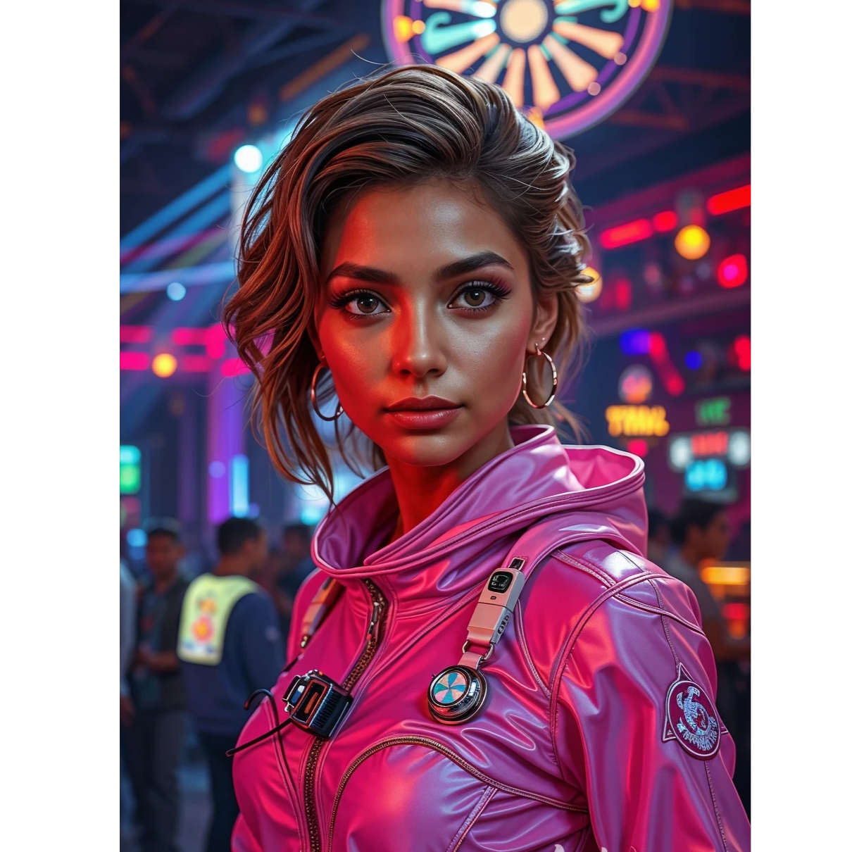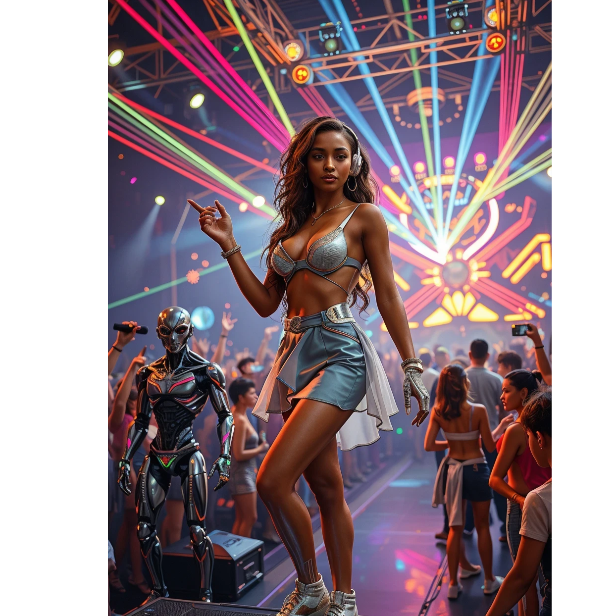 Menacing dark techno at 152 BPM; towering, distorted industrial kick and a surgically tight, relentless bassline, Cold metallic synth stabs pulse in sparse patterns, minimal melodic fragments circling like machinery in a disciplined, drop with wobble synti grooves, Drop with oboe wobble sound, high-energy cinematic electronic Techno anthem featuring a blend of aggressive synth-pop and industrial Rave elements, The track is driven by a powerful, syncopated drum beat with heavy kick drums and crisp snares, chromatic movement and a deep, rolling bassline, Verses layer wide pads, electric guitar and sparkling arps, swelling with airy risers, The chorus bursts with supersaw leads and bold, rhythmic, heavily reverbed vocals, mittle part gabber flow, rave mega hit