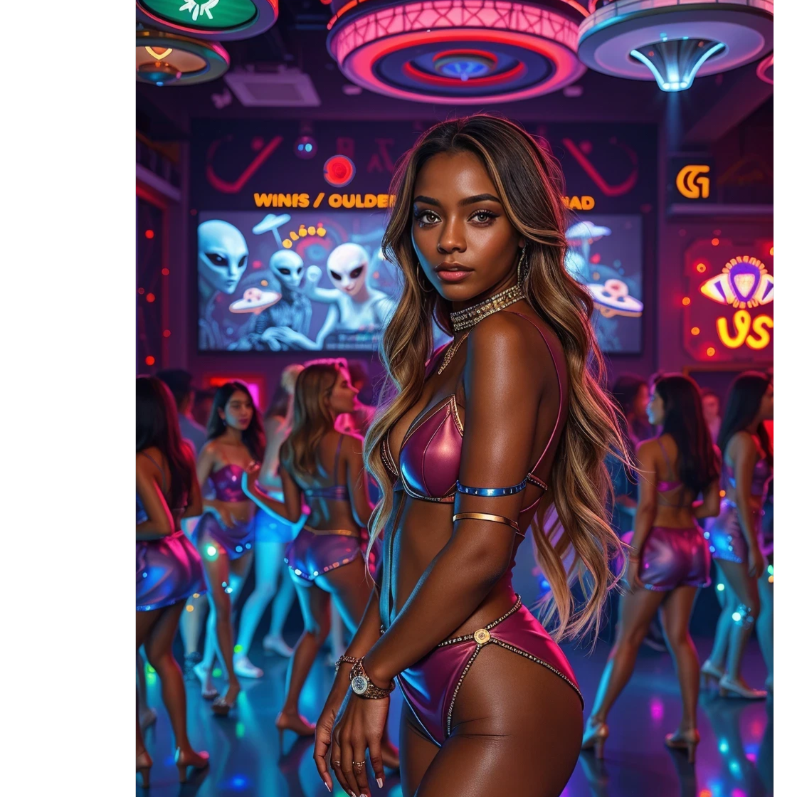 A pounding 140 bpm hard dark techno foundation drives the track with relentless minimal techno kicks, distorted hard arpeggiator synths cutting through aggressive, wobble-laced and melodic wubby bass, Deep, dark baritone male and husky female duet breathily close-miked, compete and mingle with airy soprano toplines and silky falsetto switches, Whispered vocals create tension before giving way to searing rap screams, Acidic 303 patterns and vigorous trance risers build intensity, as pulsing effects and twisted female vox FX swirl overhead, capturing the energy of a forbidding night club