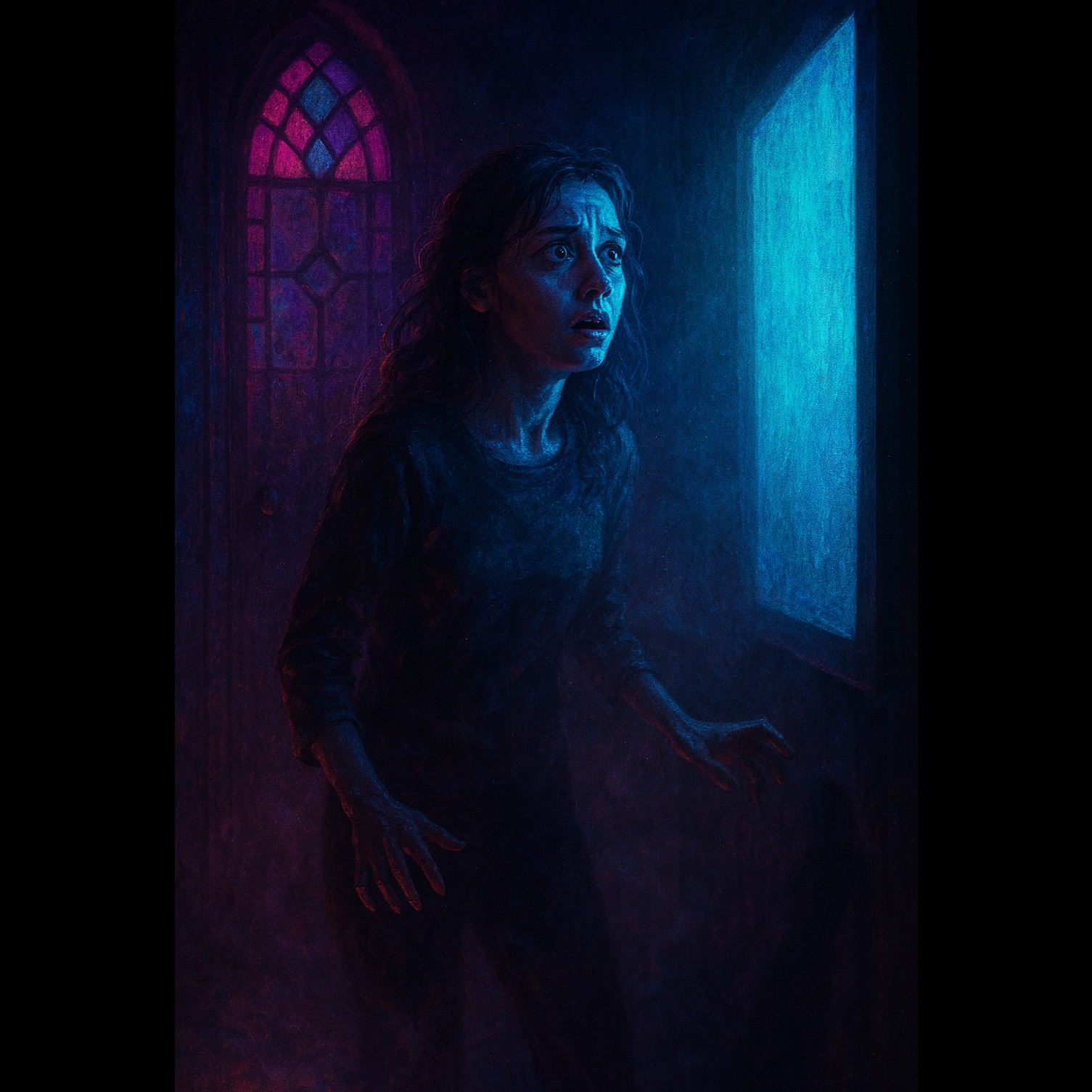 Slow, cinematic, eerie underscore with a cold, unsettling atmosphere, Minimal, tense, emotional, Whisper‑melodic female vocals, half‑spoken, half‑sung, creating a soft shiver, Subtle ambient textures, distant resonance, quiet suspense, No rhythm, no percussion, no mechanical sounds, Just a slow, creeping tension that feels like a haunted room holding its breath, Psychological, elegant, intimate horror mood