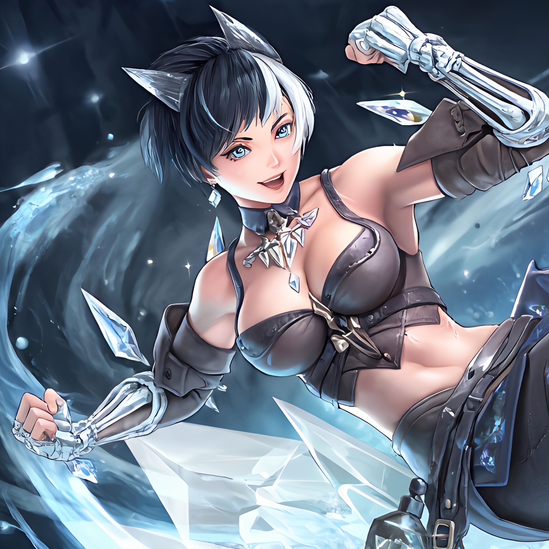 Combining electronic rock and future pop styles, it has a strong sense of rhythm, a gorgeous and sweet atmosphere but with tension, and has dynamic layered sounds and emotional outbursts, Female lead singer: The voice is warm and sweet, with a sense of transparency and love, and the range can reach the mid-high range, Male RAP: Deep and powerful voice, fast but clear speech, with a bit of laziness and bad charm, Use electronic synthesizer pads, high-frequency piano embellishments, guitar power chords (used in the chorus burst section), 808 Bass (Q-playing pearl weight), Trap Hi-Hat + EDM beats (with jumping rhythm), realistic environmental sound design: ice cracking sound + pearl chewing sound, Ambiguous atmosphere, sweet and flirtatious, futuristic, layered vocals, Jpop kinetic energy