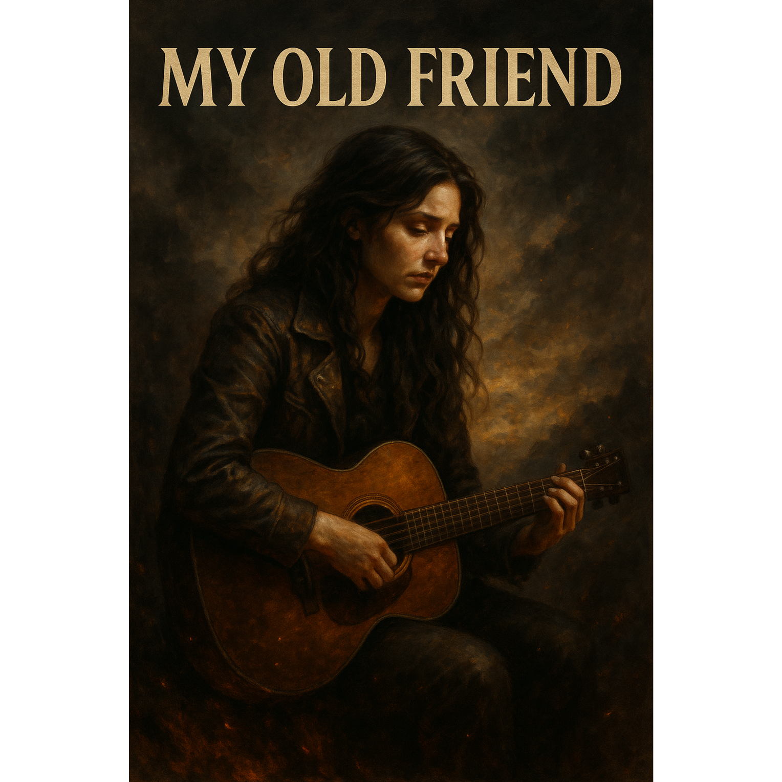 Melancholic yet heroic power metal ballad with emotional female vocals, clean and distorted guitars, layered choirs, double-bass drums, orchestral strings, and atmospheric synths, Starts softly with acoustic arpeggios and builds to epic, powerful choruses and a climactic guitar solo