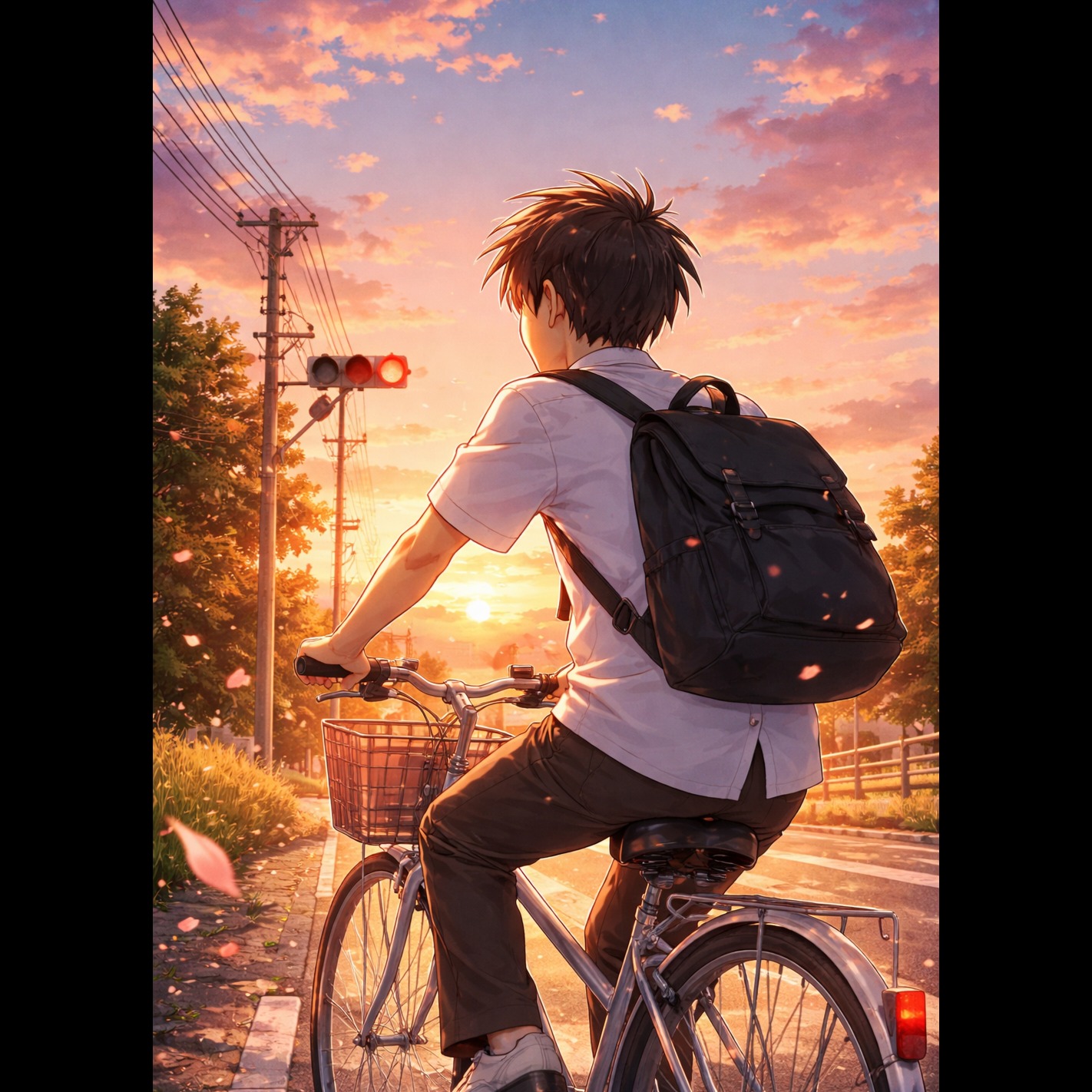 Create a bright, catchy J-POP pop-funk track with a youthful, emotional vibe inspired by a high school boy riding his bike at sunset after a confession, Make it upbeat and danceable with funky clean guitar, bouncy bass, tight groovy drums, light handclaps, subtle brass, and sparkling synths, Keep the sound glossy and modern with a warm, nostalgic tone, Add dynamic builds, small call-and-response elements, and space for intimate vocals, The track should feel like coming-of-age, first love, and a soft, overwhelming happiness in motion