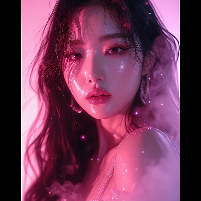 k-pop, female singer, dark pop, whimsical pop, art pop, psychedelic pop, haunting, beautiful, melancholy, synth pop, dungeon synth, dark ambient, atmospheric chamber rock, post rock, catchy bubblegum pop, dark pop, hip hop