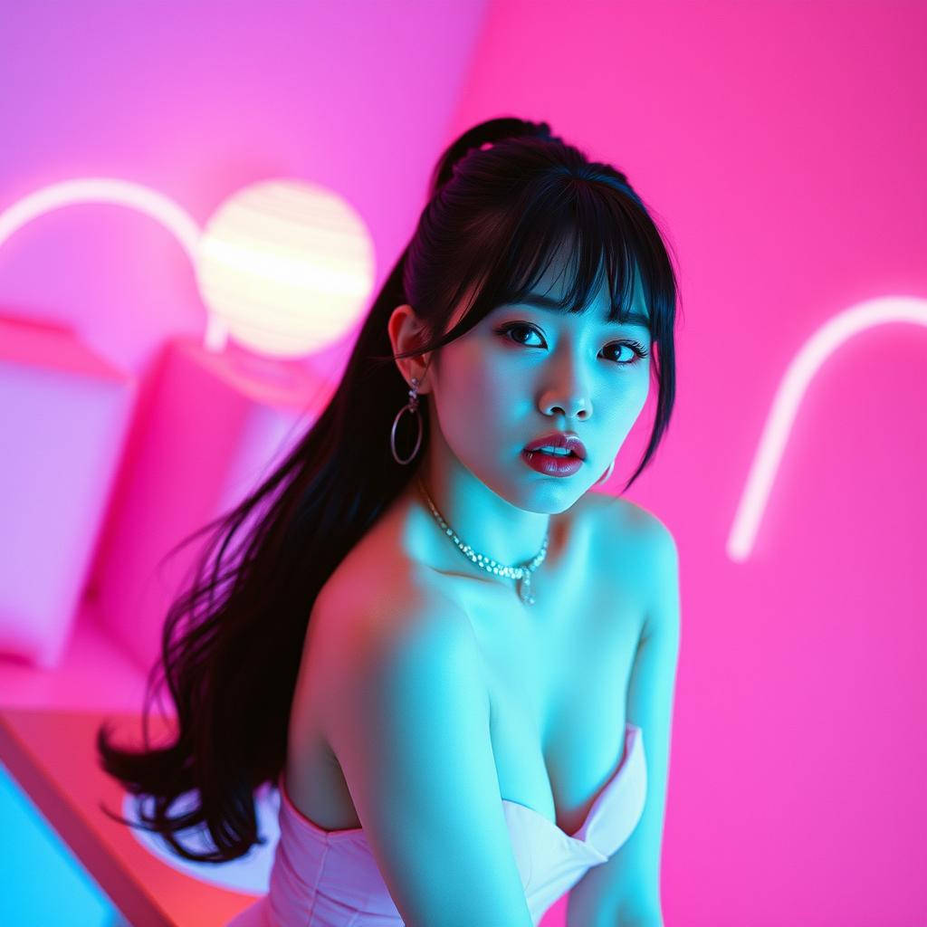 k-pop, female singers, catchy bubblegum pop, dance pop, vaporwave, future funk, funky saxophone