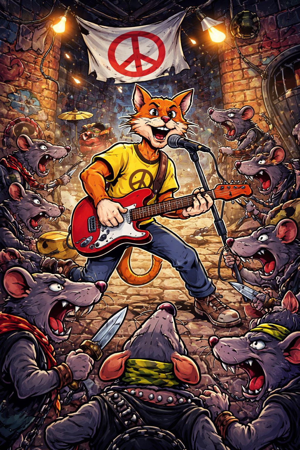 Aggressive punk / hardcore song with fast tempo (~180 BPM), Raw distorted electric guitars, heavy bass, and intense driving drums, High energy, sharp attack, slightly chaotic but controlled, Male lead vocal, gritty and powerful, semi-shouted with clear and precise Russian pronunciation, Emotional delivery with tension and irony, Chorus features gang shout vocals, loud and anthemic, Verses fast and punchy, pre-chorus builds pressure, chorus explosive and catchy, Bridge breaks down into half-time with darker mood, then builds into a powerful final chorus, Atmosphere: конфликт, напряжение, затем переход к единству, Mix slightly raw, live feel, vocals upfront, energetic and aggressive