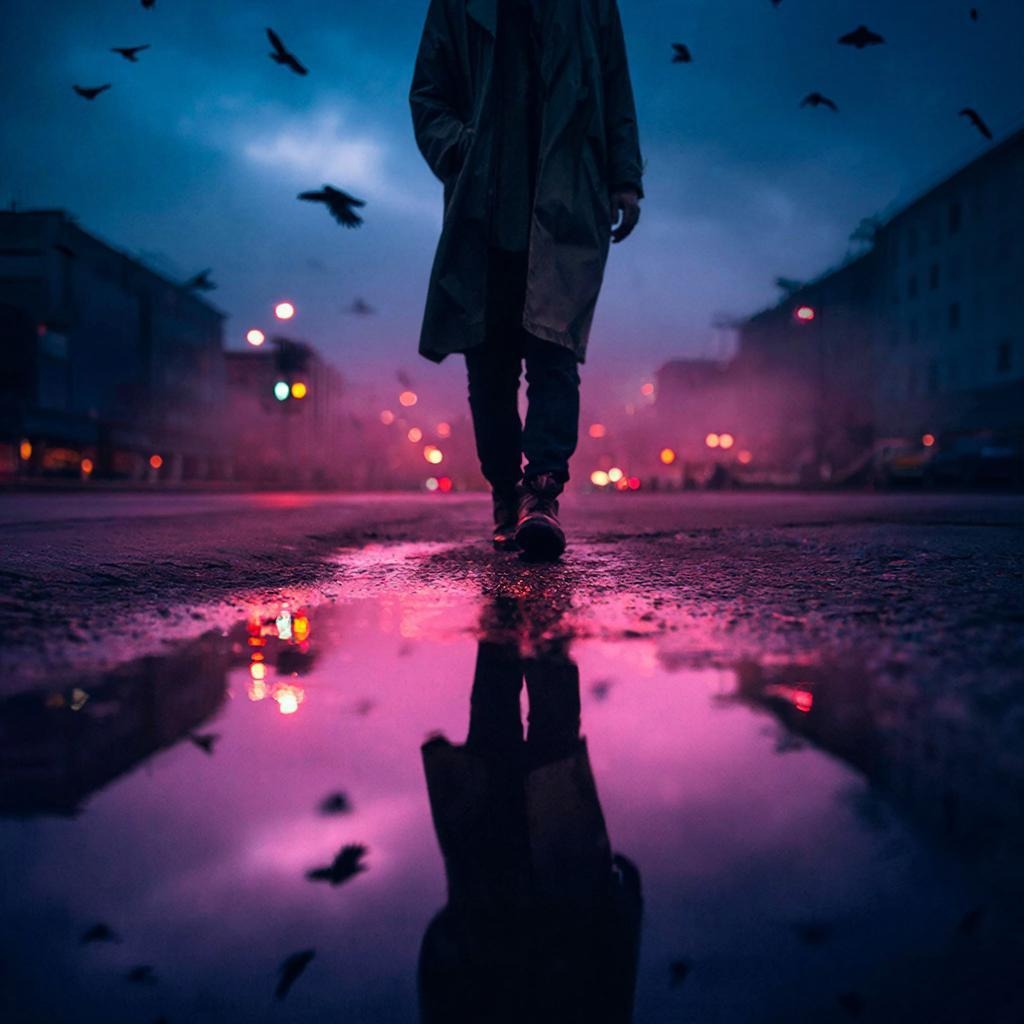 raw imperfect sound, humanized timing, slight imperfections, loose groove, natural dynamics, breathing space, live feeling, rain ambience, street night atmosphere, distant city sounds, reverb tails, echoing space, unexpected pauses, silence breaks, drop without drums, minimal intro, delayed drop, vocal echo phrases, call and response vocals