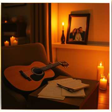 Russian bard song (author’s song) style, female vocal (warm, sincere tone, conversational delivery, flexible range for emotional expression), acoustic guitar as main instrument (fingerpicking), moderate tempo (80–90 BPM), major key with minor elements in verses, dynamics follow the poem’s structure: soft and reflective in stanzas 1–2, slightly stronger in stanza 3, more emphatic in stanza 4, gentle fade‑out in stanza 5, clean production, intimate storytelling atmosphere