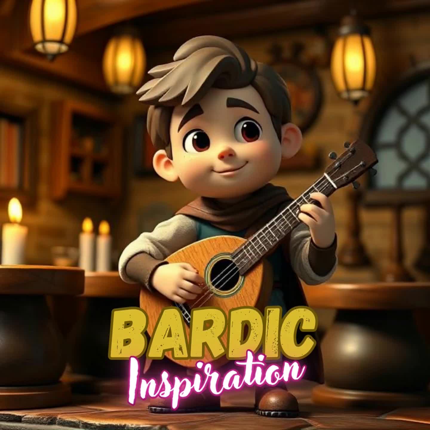 Lute, medieval vibe, D&D Bard vocalist, Accompanied by panpipe, Ballard, uplifting chorus