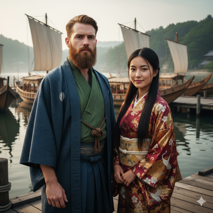Epic 1970s progressive rock with cinematic storytelling and extended instrumental passages, Male vocals are clean, expressive, and occasionally harmonized, Guitar leads soar with melodic arpeggios, while keyboards and organ provide rich textures, Drums and bass are dynamic and syncopated, building tension and release, The song conveys intrigue, honor, forbidden love, and cultural clash, inspired by feudal Japan and samurai codes, Include a long instrumental section to evoke battles, political strategy, and tension, Tags: 70s progressive rock, epic, cinematic, storytelling, samurai, feudal Japan, intrigue, forbidden love, instrumental solos, expressive male vocals, melodic guitars, organ textures, dynamic shifts