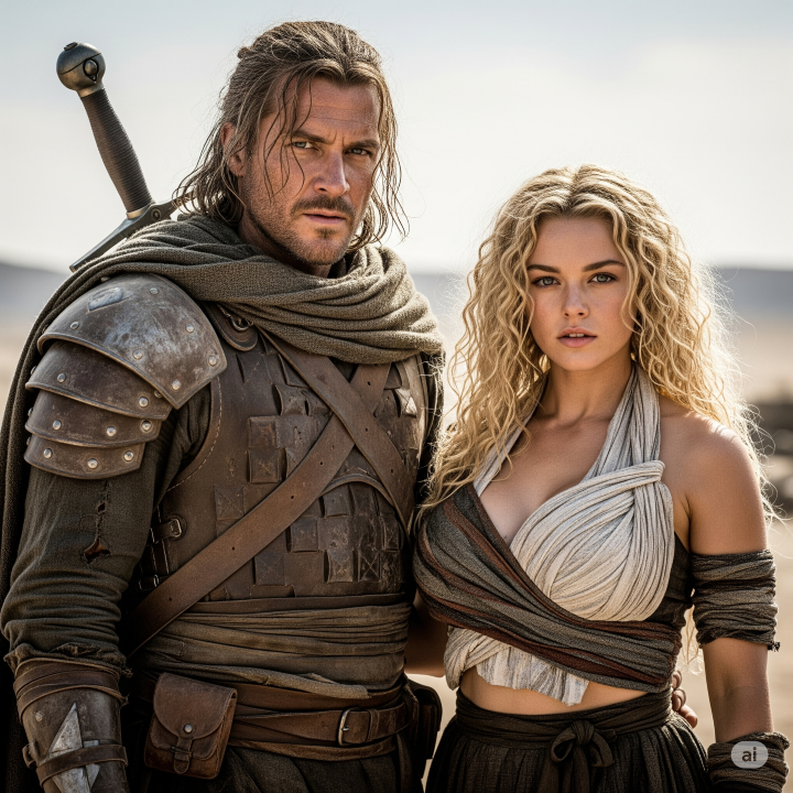 A mid-tempo 80s AOR soundtrack anthem filled with urgency and power, Prominent keyboards drive the melody with pulsing synth bass, bright stabs, and atmospheric arpeggios, Electric guitars cut through with sharp riffs and soaring leads, The vocal is bold and heroic, with massive harmonies lifting the choruses to epic heights, The lyrics tell the story of a lone fighter in a post-apocalyptic wasteland, After his parents are murdered by a ruthless warlord who controls the last clean source of water, he sets out for vengeance, His mission: destroy the tyrant, return water to the people, and restore life and freedom to the world