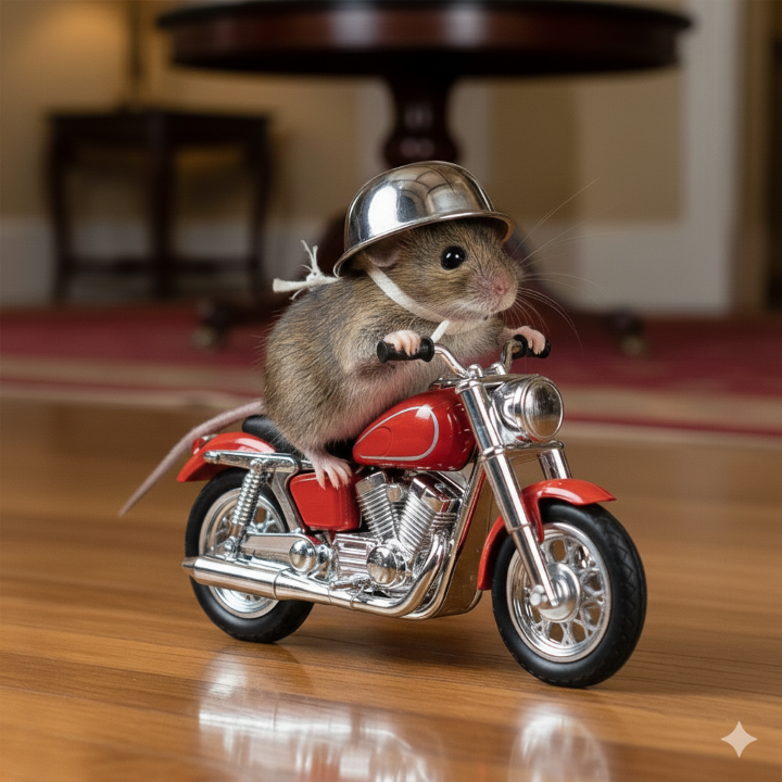 Mid-tempo, cinematic AOR rock with clean male vocals, following the adventurous story of a tiny mouse on a daring motorcycle ride, Guitar-driven with melodic riffs, energetic drum patterns, and subtle synth pads to enhance atmosphere without overpowering, The song should feel rebellious, fast-paced, and adventurous, with story-driven verses, punchy singable choruses, a soaring guitar solo, and a reflective outro, Emphasize clarity, emotion, and momentum throughout, capturing excitement, freedom, and triumph, Tags: Mid-tempo, AOR, cinematic rock, adventurous, clean male vocals, guitar-driven, punchy chorus, energetic drums, story-driven, soaring guitar solo, reflective outro, rebellious, fast-paced