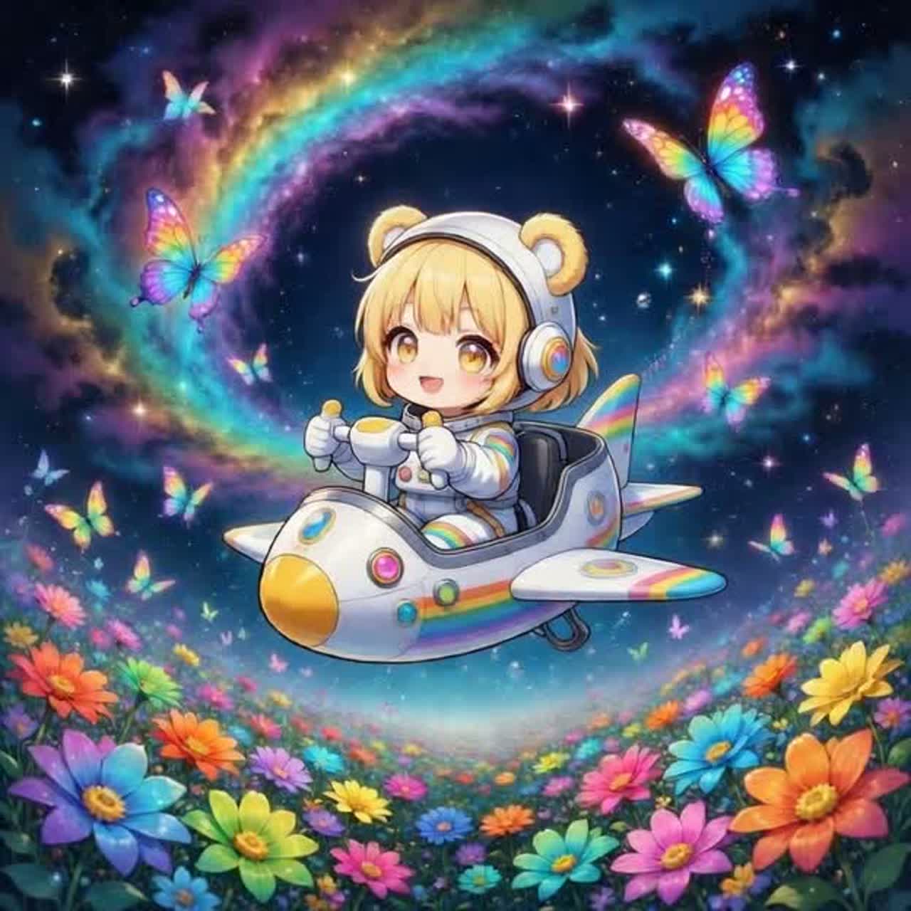 J-pop, playful J-pop, Disco idol pop, kawaii vocals, vaporwave, funky basslines, glittering synths, four on the floor beats, dancefloor groove, neon disco