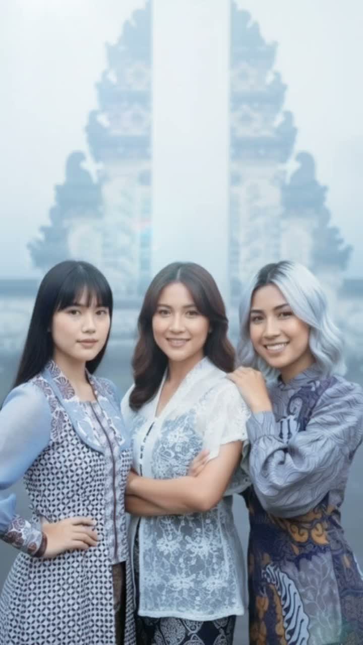 A progressive art pop composition with ethnic flavor weaves Balinese gamelan textures alongside intricate, shifting keyboard melodies and unconventional chord changes, Odd-metered live drums interlock with bright synthetic percussion, Electric and 12-string acoustic guitars layer vibrant motifs, Three girl group female vocalists deliver rich ethereal harmonies with careful vocal line distribution, gliding between angelic softness and powerful bursts, The dynamics move from hushed, misty atmospheres to exuberant, energetic peaks, creating an immersive, ever-changing soundscape