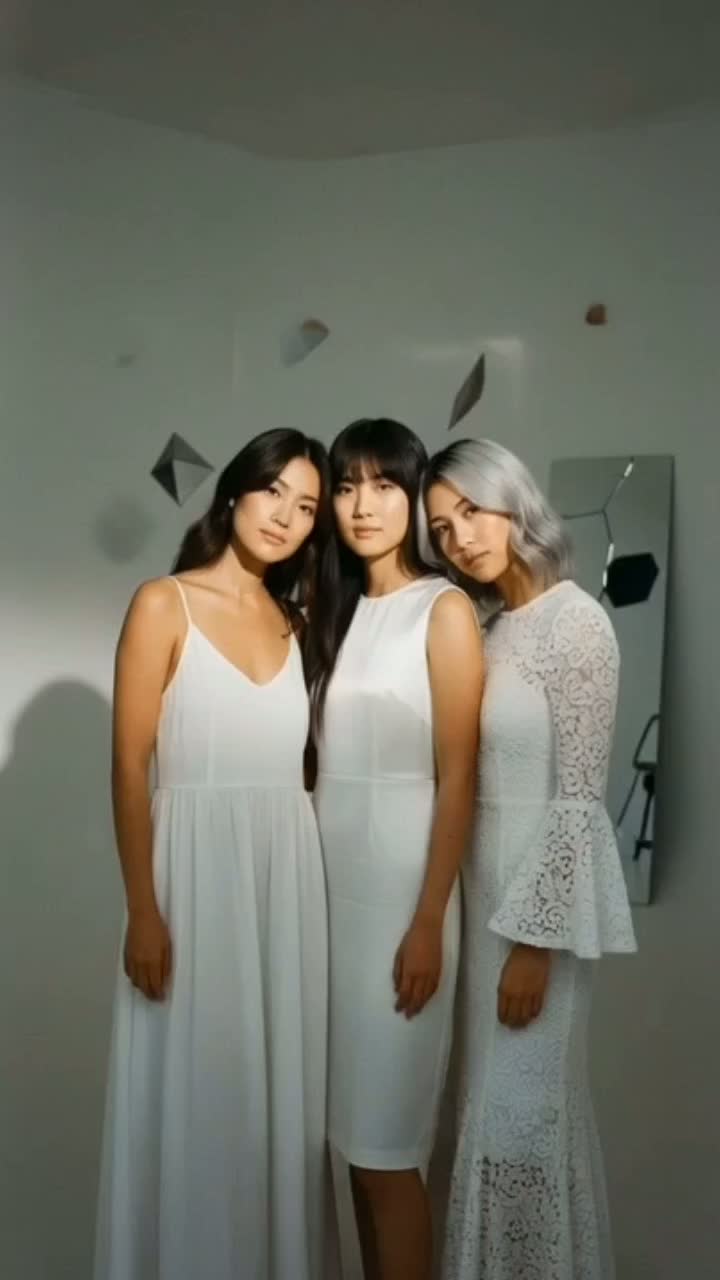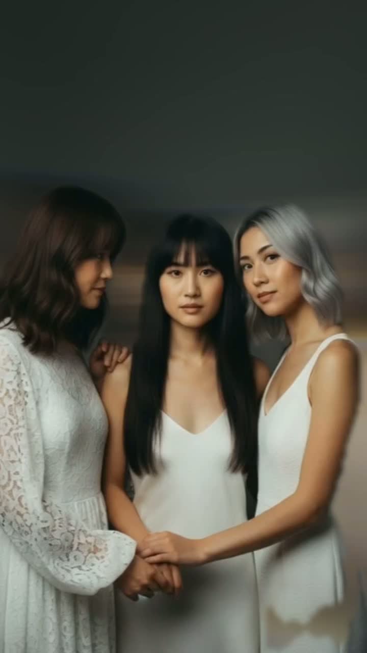 This art pop fusion opens with an electronic beat intertwined with tight live drums, layered by intricate synthesizer riffs and delay-drenched arpeggiated guitar, Each verse spotlights one of three distinct K-pop-inspired female voices, while the chorus erupts into lush, rich group harmonies and a grand choral backing, Band instruments weave with electronic textures throughout, all polished by pristine, clean mixing and mastering for dynamic, genre-blending clarity