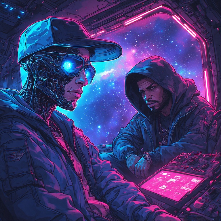 Trap-Boom bap Avant-Garde Otherworldly synths fast tempo hip hop mesmerizingly alien pad chimes lush rhythmic 808 bass