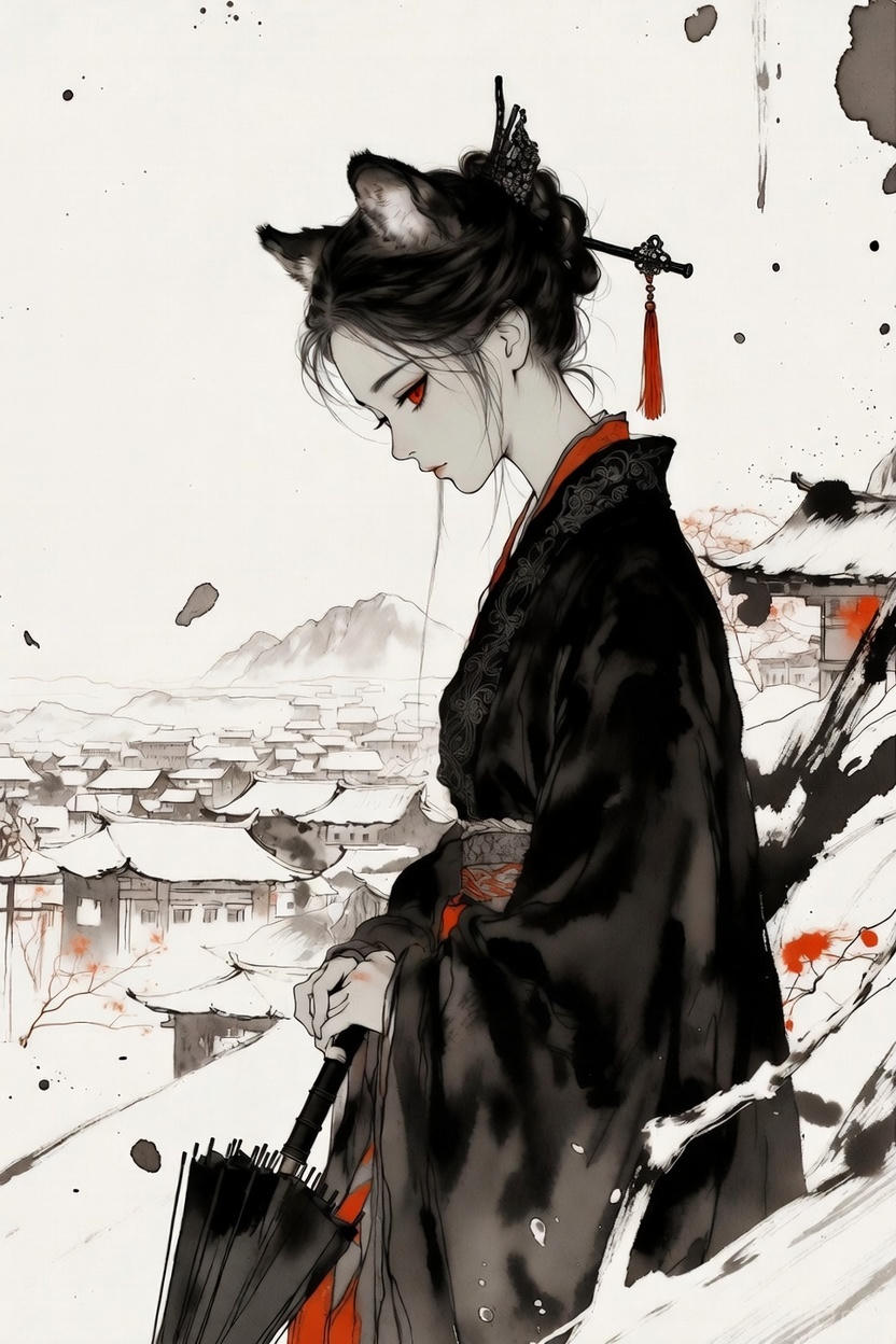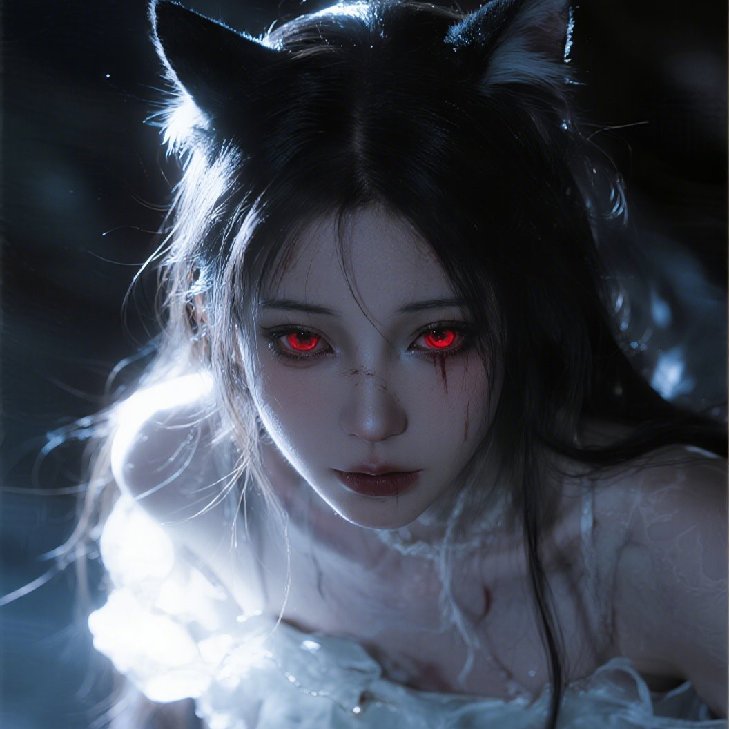 Cinematic Fantasy, Mythical Seduction, Oriental Noir, Emotional Grandeur, Oriental Fusion, Cinematic Dark Pop, Erotic Folk Noir, Neo-traditional Chinese style, Sensual and mysterious atmosphere with a hauntingly seductive tone, Featuring breathy falsetto and emotive whisper-singing with traditional Chinese vibrato and dynamic tone shifting, Instrumentation includes Guqin, Erhu, Pipa arpeggios, Taiko drums, sub bass, ambient textures, and ethereal synth pads, The mood is dangerous beauty with twilight fantasy elements, perfect for a seductive fox spirit or cat demon character