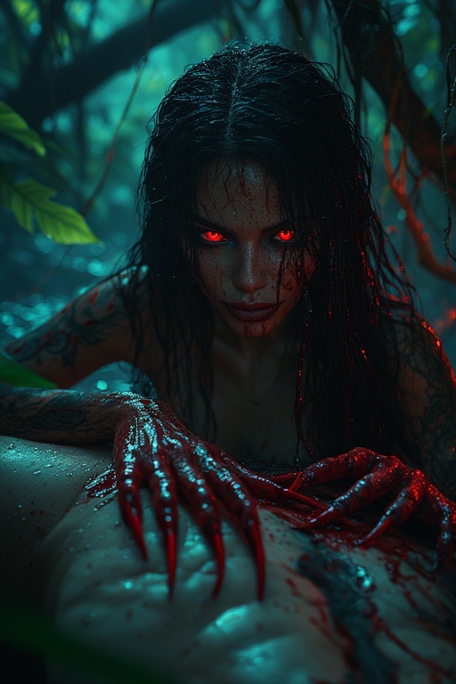 Female-fronted System Of A Down, chaotic Armenian-tinged alternative metal, odd time signatures 7/8 11/8 13/8 5/4, sudden silent drops, drop C# 7-string riffs, darbouka + tribal + brutal drums, manic rapid-fire spoken female vocals, hysterical falsetto hooks, unhinged multi-layer harmonies, theatrical absurd poetic gore, sensual political rage, jungle ritual meets Armenian folk madness, maximum schizophrenia and energy