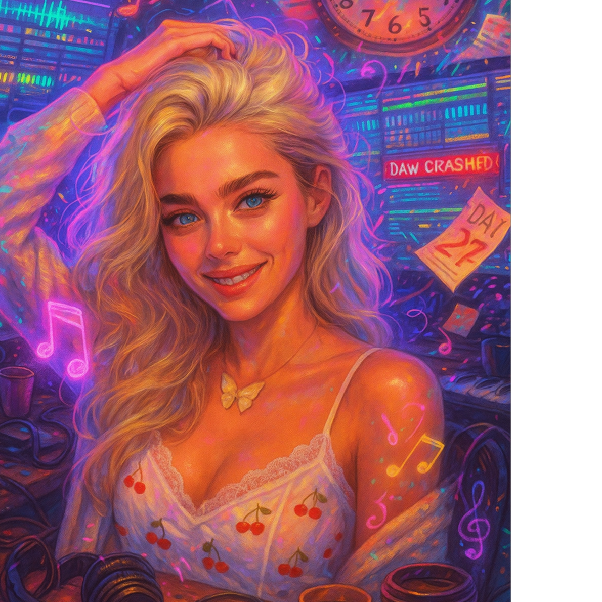 witty meta rap about the chaotic creative process of writing a song for a contest, with clever lyrics, self-aware humor, and a laid-back groove, lo-fi hip-hop beat mixed with acoustic elements like soft guitar loops, mellow piano, and occasional vocal chops, emotional but playful tone, switching between chill reflection and ironic confidence, rap vocals delivered in a conversational, storytelling style, sounds like a cross between Open Mike Eagle, and lo-fi YouTube rap, uplifting ending with dreamy bridge and hopeful hook, inspired by the struggle of perfectionism, writer’s block, and last-minute magic
