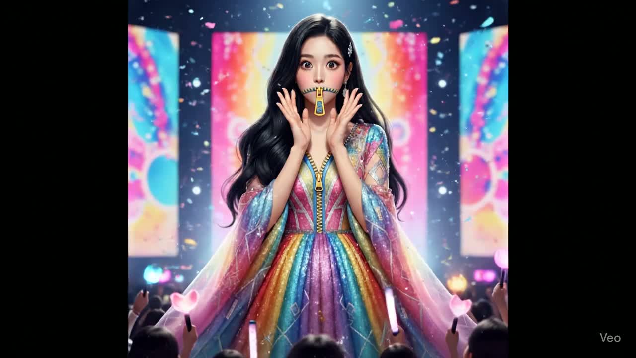 A frenetic drum and bass foundation merges with jungle breaks, acid house-style piano and big beat energy, anchored by a driving hard snare and glitch vocalizations, K-Pop inspired, raw, rebellious vocals ride a groovy, French touch-infused EDM landscape, with a sharp, catchy bass and hook, Experimentation thrives in abrupt drops and layered textures, blending girl group harmonies with edgy Rap