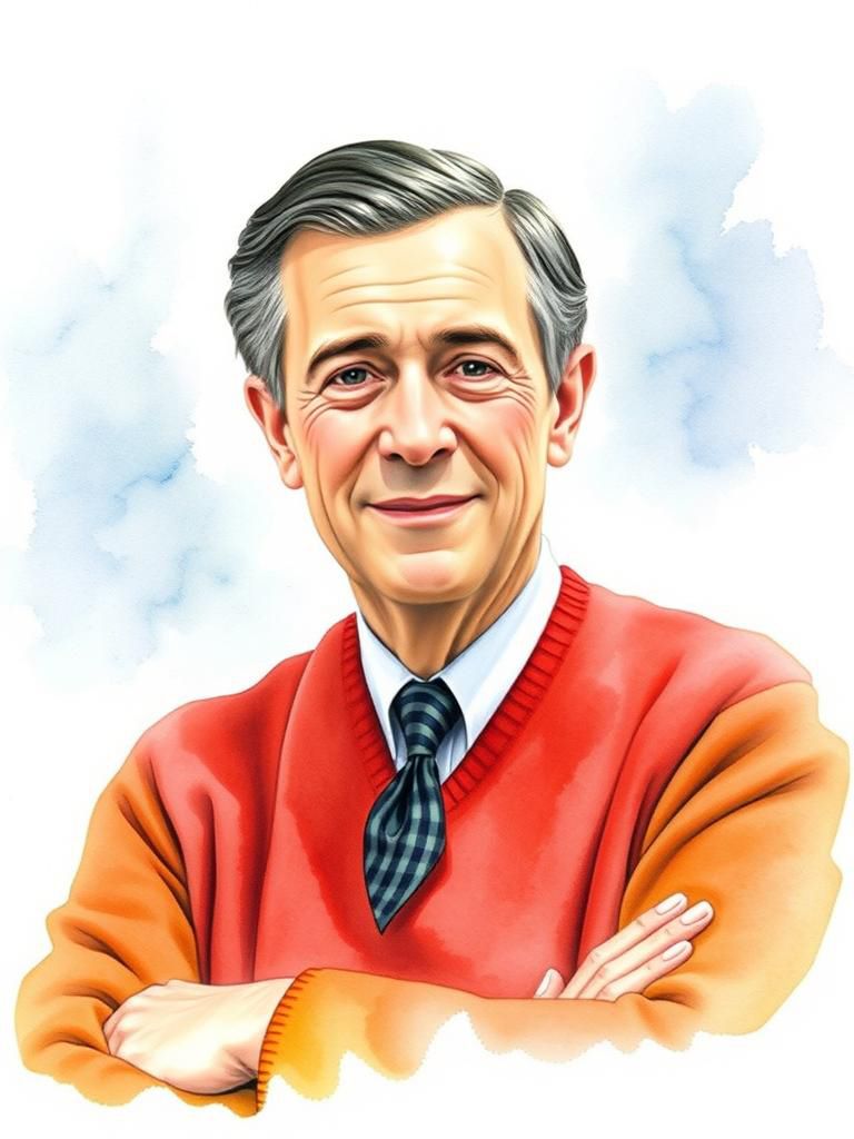 Kind rational spoken word monologue talking over childrens tv show theme show music soundtrack, Mr Rogers