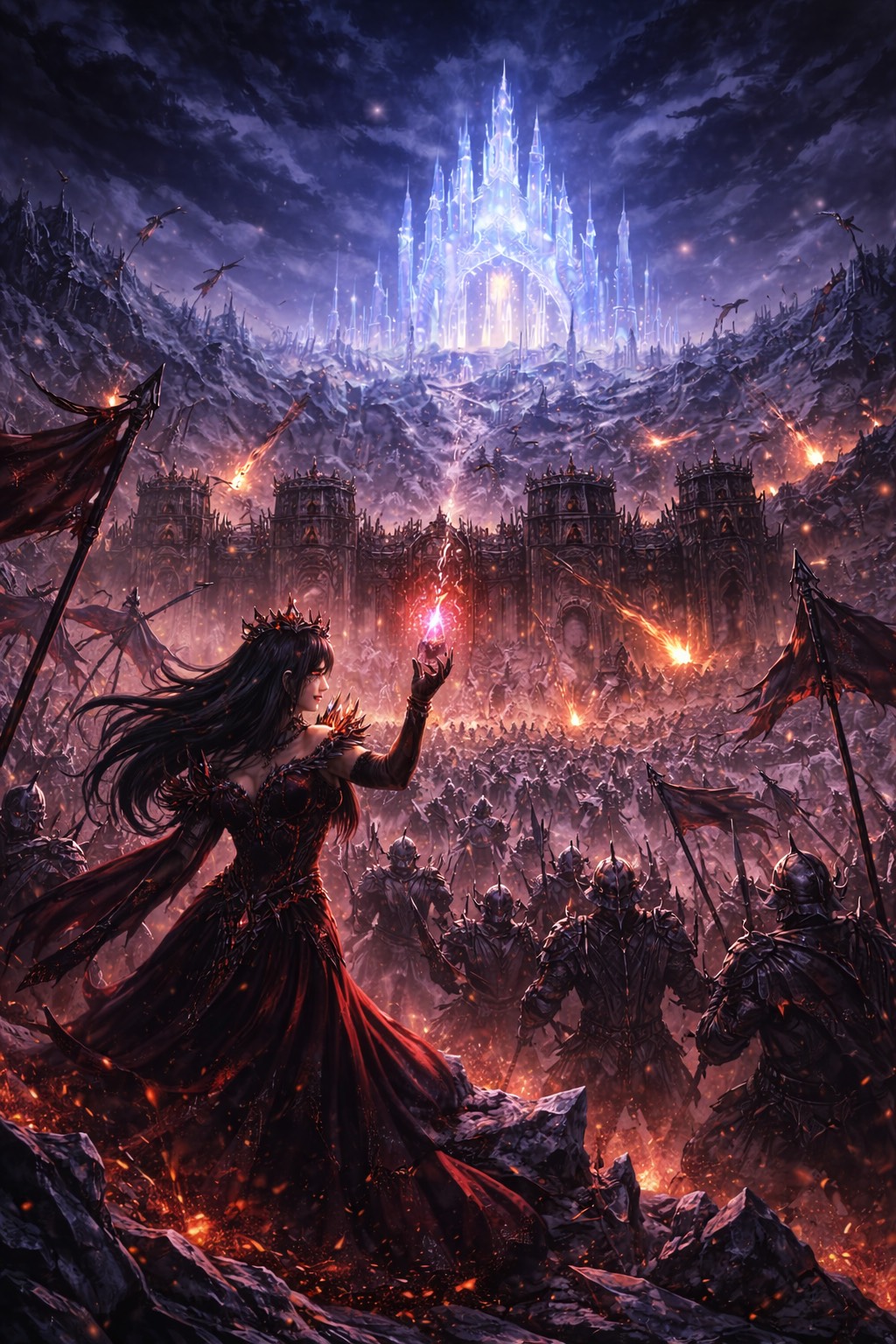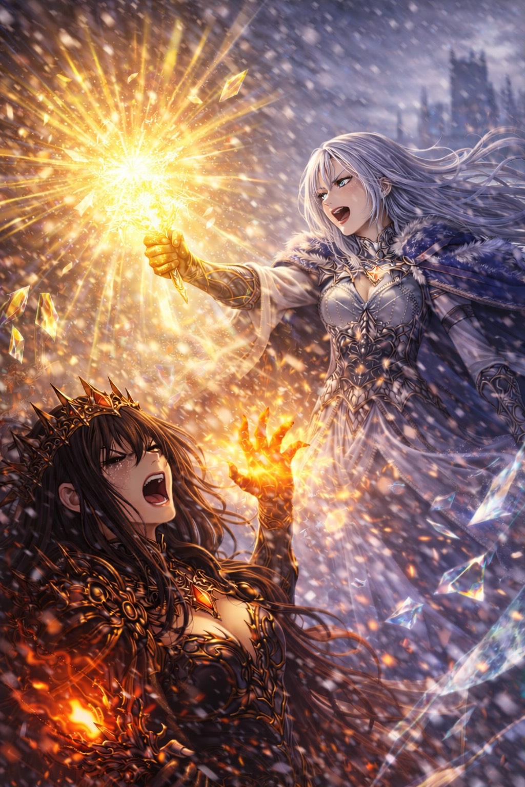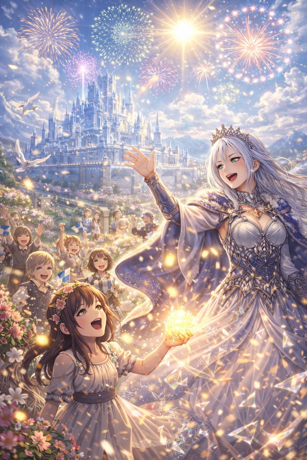 Disney Musical, Grand Orchestral Waltz, Cinematic Fantasy, 3/4 Time Signature, 95 BPM, Structure: Magical Intro, Verse 1, Pre-Chorus, Chorus, Verse 2, Pre-Chorus, Chorus, Crystal Dance Break, Emotional Bridge, Key Change, Grand Finale, Outro, Vibe: Majestic, Royal, Sparkling, Awe-Inspiring, Triumphant, Elegant, Instruments: Glass Harmonica, Celesta, Full String Orchestra, Harp, Chimes, Brass Section, Choir, Vocals: Clear Female Vocals, Expressive, Full of wonder, Building to Powerful Belting