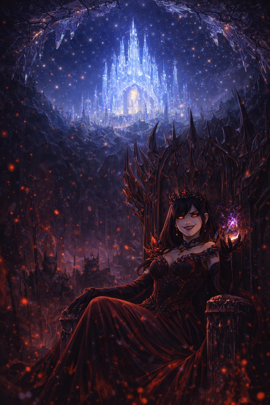 Disney Villain Song, Dark Orchestral March, Husky Female Vocals, Raspy Texture, Deep & Commanding, Gothic, Majestic, Heavy Brass, 95 BPM, Structure: Heavy Intro, Arrogant Verse, Commanding Chorus, Mocking Verse, Powerful Bridge, Maniacal Outro, Vibe: Dominant, Evil, Scary, Powerful, Arrogant, Regal, Instruments: Low Strings, Tuba, Timpani, Pipe Organ, Evil Laugh FX, Vocals: Husky Female Vocals, Low Register, Speech-singing, Evil laughter