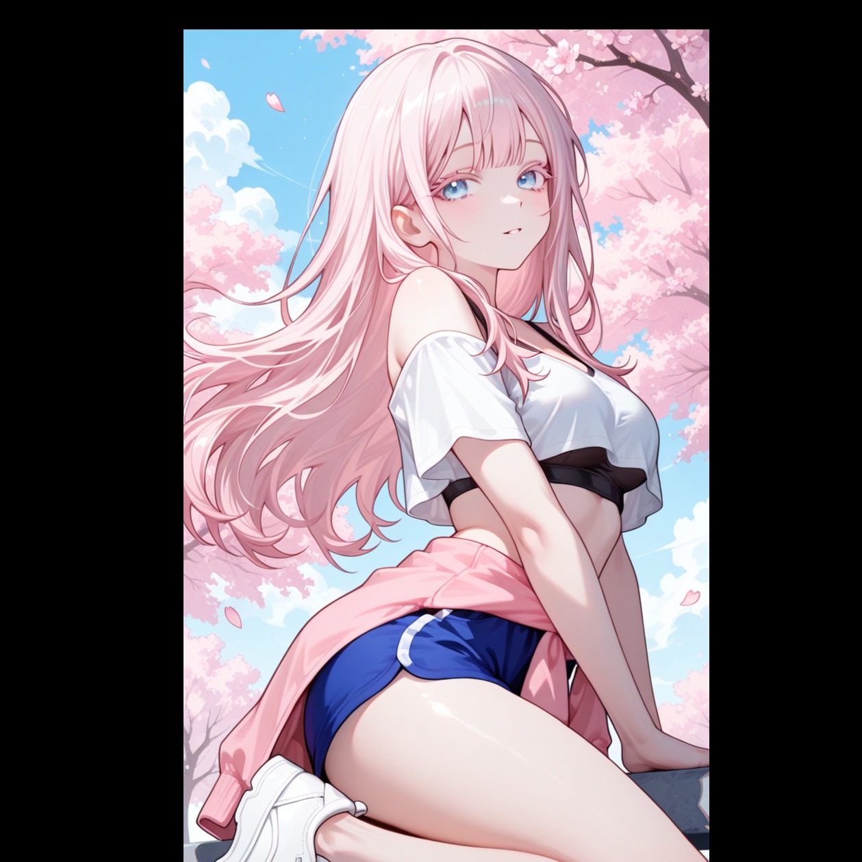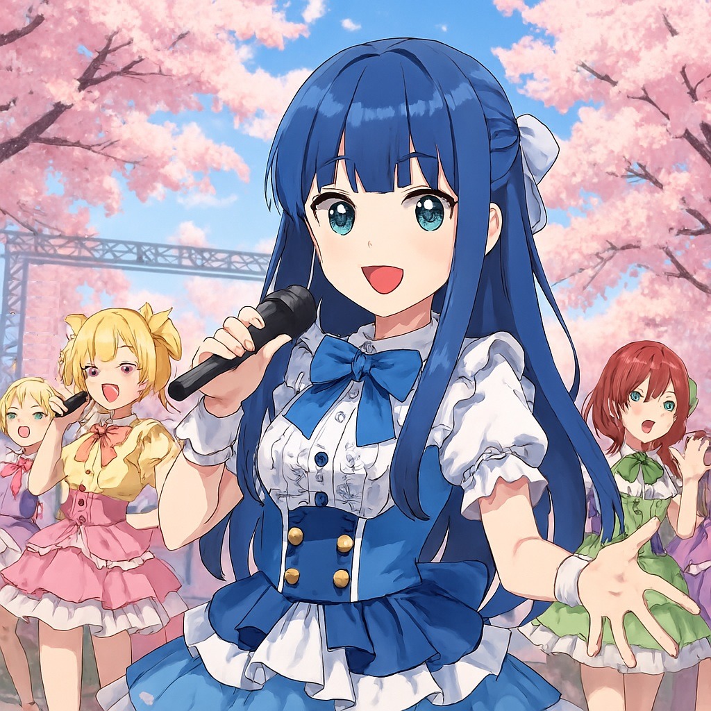 Upbeat Japanese EDM love pop at 126 BPM; bright four-on-the-floor kick drives the rhythm, with a glossy sidechained synth bass underscoring the sparkling pluck leads and airy pads, Verses are minimal—light percussion, gentle synths—showcasing soft, clear, youthful female vocals with breathy sweetness and playful phrasing, Subtle vocal chops accent the mix, Builds leverage snare rolls, rising filters, and lush chord lifts, The chorus bursts with euphoric energy: festival-style drop, cute melodic hooks, bubbly textures, tight harmonies, and crisp rhythmic phrasing, Brief 8-bar rhythmic talk-rap adds bounce before the final bright, emotional, and radio-ready chorus, Warm low end, crisp highs, and a fizzy, cherry blossom springtime feel pervade, finished with modern J-pop EDM production and wide stereo imaging