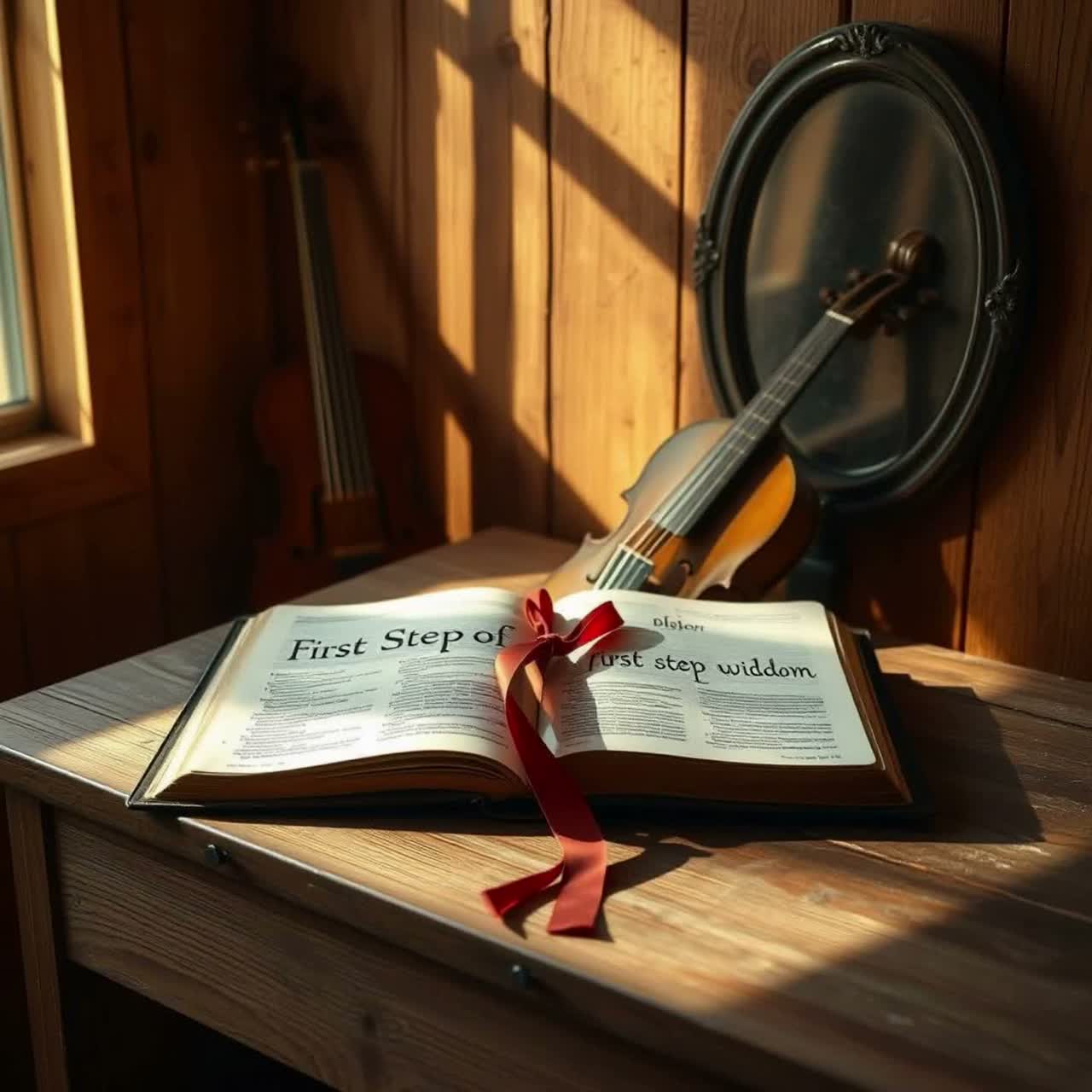 “Western‑Plains outlaw gospel‑blues with Southern‑Gothic mood and small string section at 78–86 BPM, Gritty male vocal, acoustic and electric guitars, warm bass, soft organ, roomy drums, with fiddle/violin doing call‑and‑response, Lyric: Wisdom and Folly personified as two voices calling down the same dusty main street—one leading to life, one to a dead‑end alley, ”