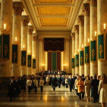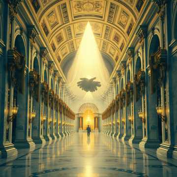 Regal French Baroque march meets cinematic electro; harpsichord flourishes over a stern orchestral ensemble, heavy timpani driving a 120 BPM strut while analog Moog bass swells beneath, Male vocals in a commanding, almost choral delivery; verses feel like a procession entering a great hall, chorus explodes with layered choir shouts and brass fanfares, Final section pushes into a huge crescendo with widening synth pads and thunderous drums, then a sharp, triumphant cutoff, electronic, harpsichord, orchestral, baroque