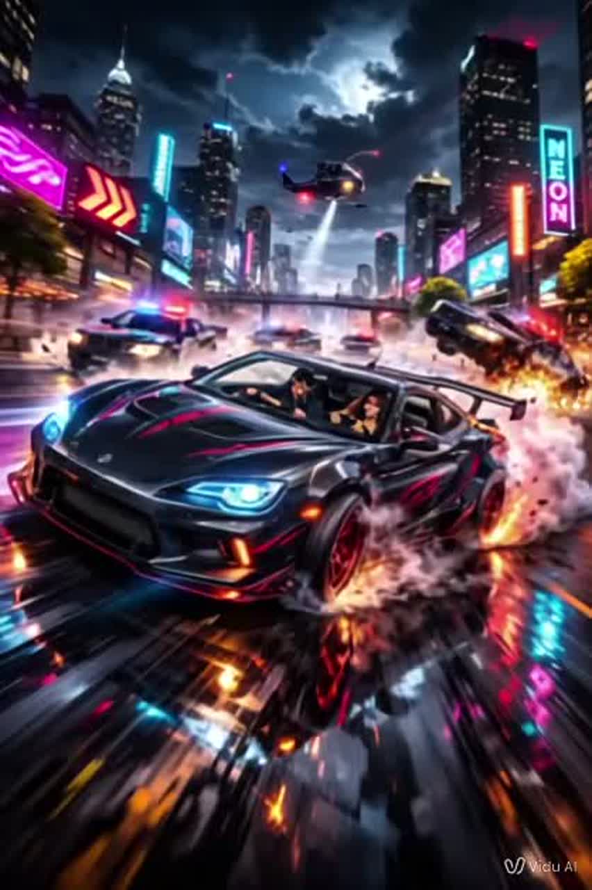 A high-octane eurodance and eurobeat anthem kicks off with car drifting effects and grippy hip-hop beats, Fast synth arpeggios mix with electric guitar while chorus hooks burst with double-tone autotune epic melodies and energetic, addictive refrains, Verses pulse with melodic electronic layers, and the bridge explodes into a guitar and keyboard synth duet solo, both in double tone for an epic, studio-polished feel, The entire song keeps the melody catchy energy peak, evoking high-speed racing vibes throughout