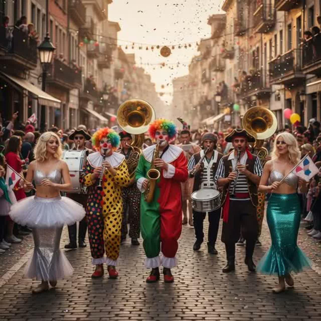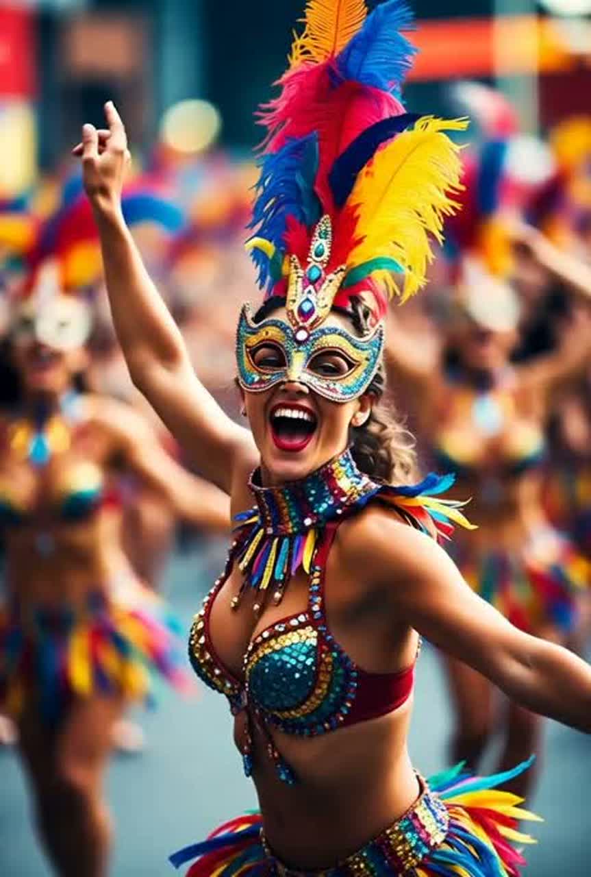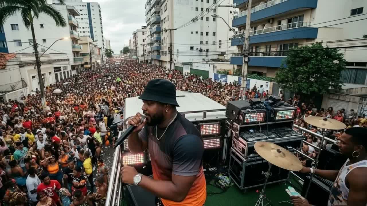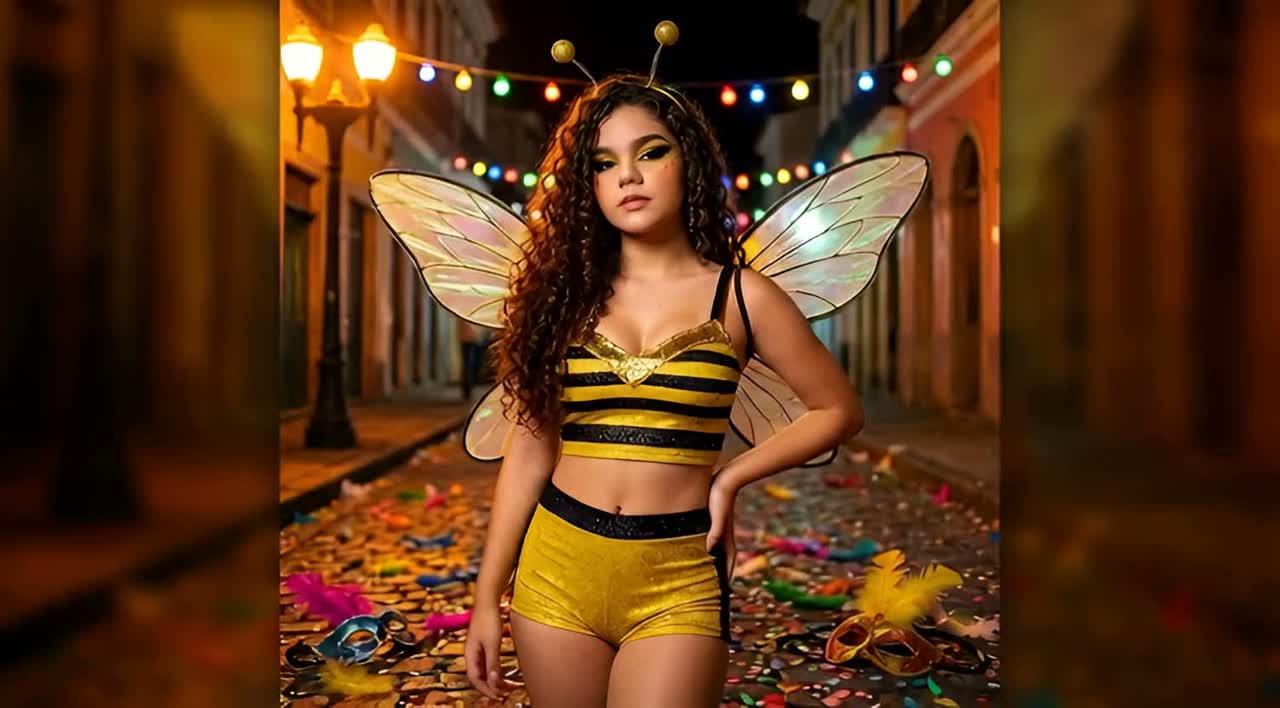 [Estilo: Carnaval do Rio de Janeiro, duet vocals ritmos autênticos de Carnaval, pop de Carnaval, funk brasileiro, baile de Carnaval; Instrumentos: surdo, repique, tamborim, darbuka, caixa, tambores de Carnaval, percussão rápida, metais e brass hits; Vocal: feminino, charmoso e melódico, estilo interativo, call-and-response com crowd; Energia: máxima, groove contagiante, riffs de synth festivos, stabs de metais, efeitos de crowd, palmas, confete; Articulação rápida: frases curtas, vocal dinâmico e riffs de percussão sincronizados; Drops: explosivos, combinando tambores de Carnaval, funk brasileiro e riffs de synth; Transições: breakdowns filtrados e crescendos para manter tensão e energia; Refrões: gang shouts femininos, call-and-response, participação do público; Uso: perfeito para trio elétrico, bloco de rua, festival, festa ou carnaval urbano; Atmosfera: vibrante, festiva, interativa, com swing de axé e vibração contagiante, ]