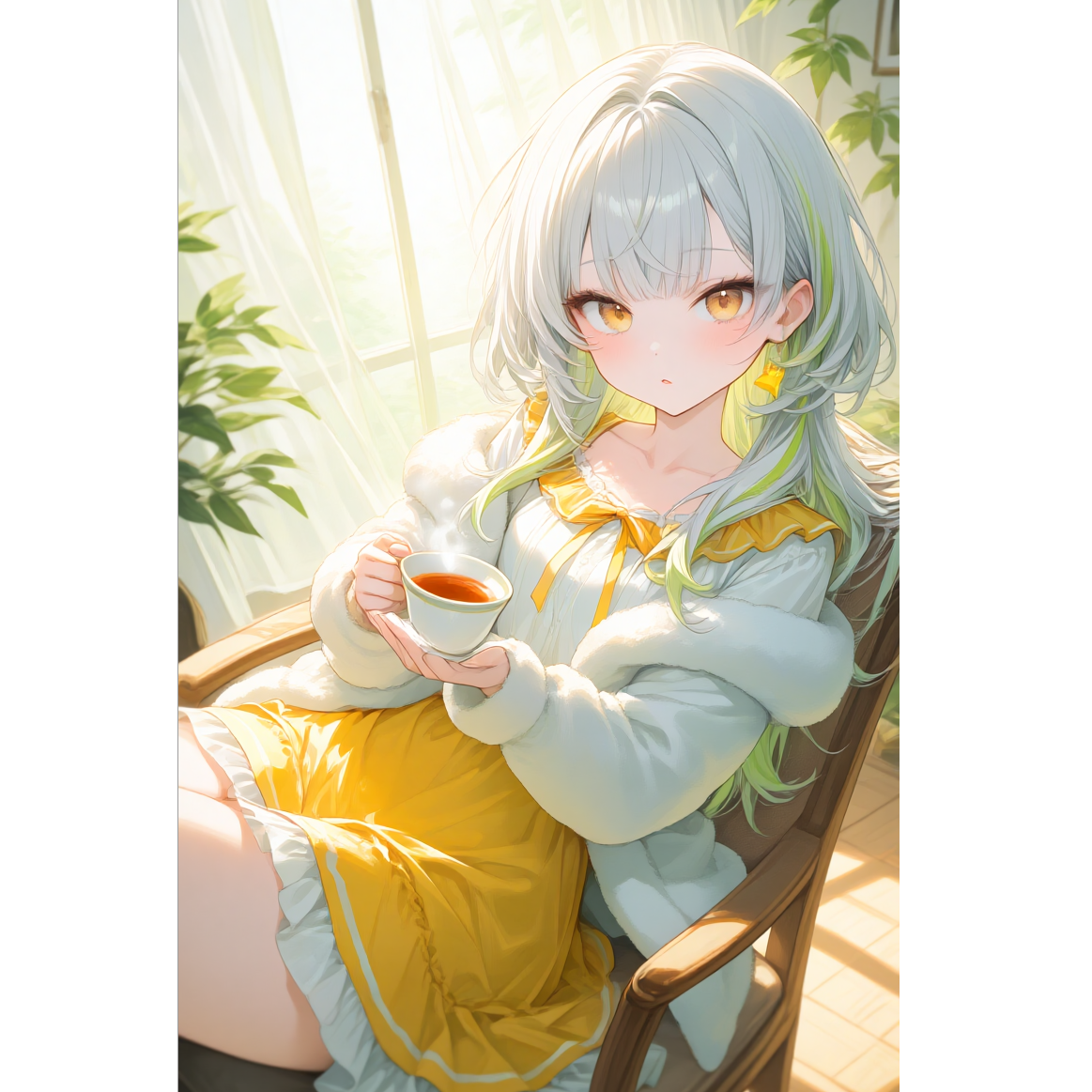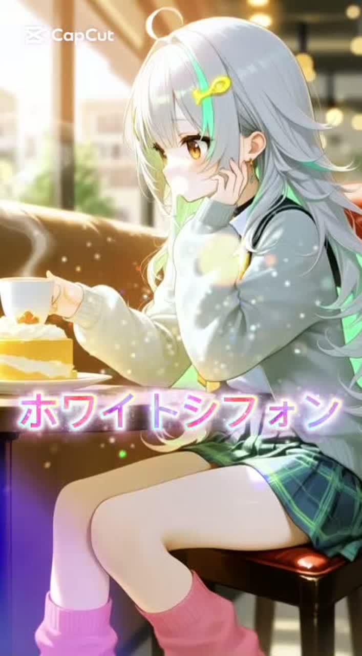 [Instrumentation: soft clear piano, pastel plucks, glitter arps, mellow synth pad, gentle 4/4 beat, warm analog bass, airy bells, cafe ambient sounds (teacup, small chatter)]