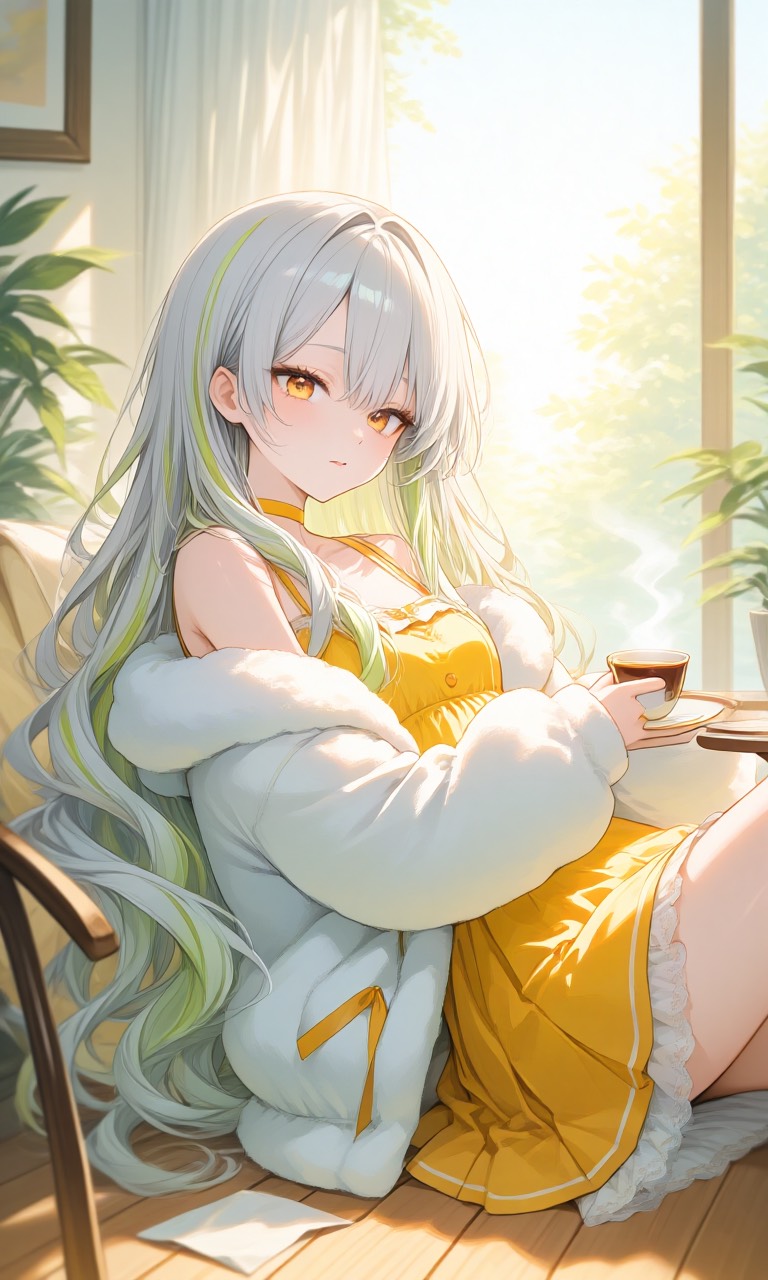 [Theme: peaceful afternoon, fluffy cake, friendship, gentle joy, pastel sunshine]