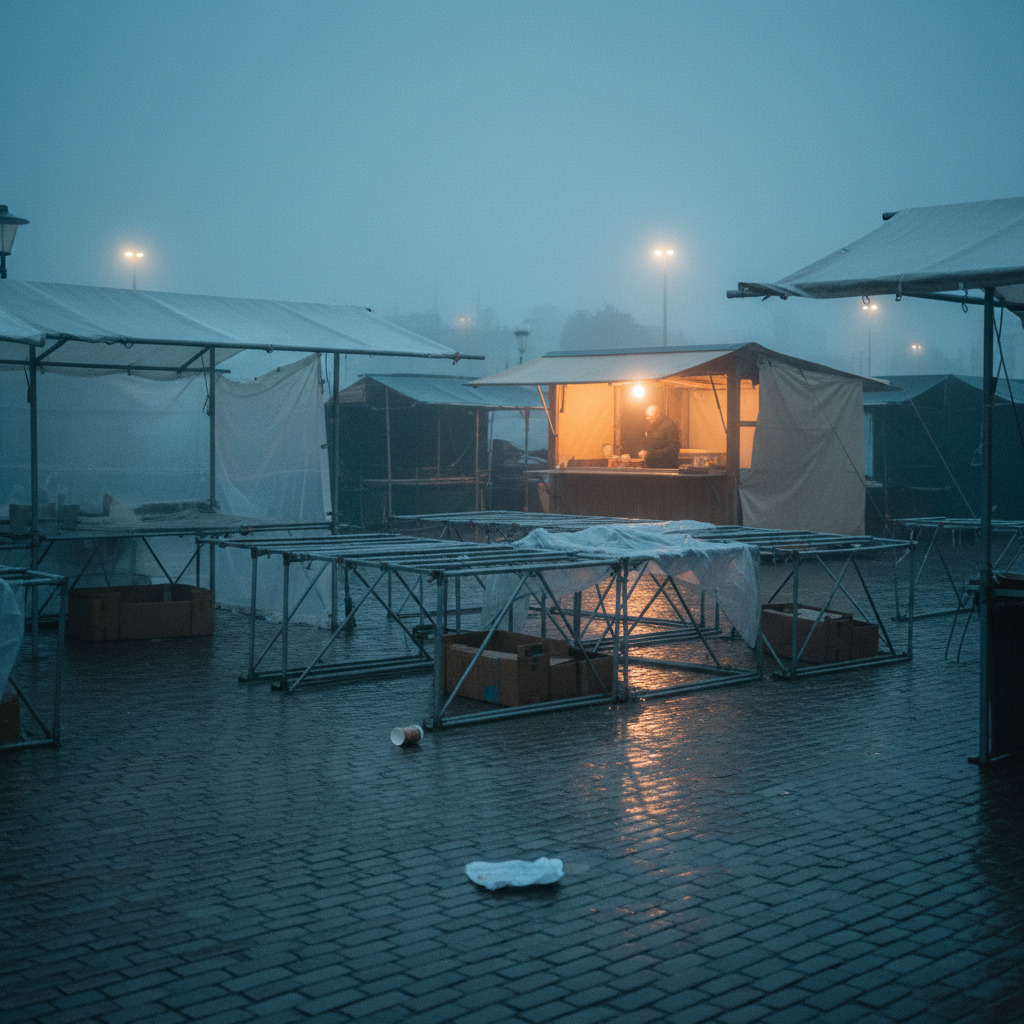 Dark, restrained Dutch urban ballad in E minor, Slow 4/4 at 70 BPM, Piano-led arrangement with low cello and subtle contrabass, Sparse brushed drums entering in verse 2, No accordion, no choir, no folk elements, Mood is reflective, melancholic, slightly bitter but controlled, Raw mid-low male vocal with emotional restraint, occasionally half-spoken, Cinematic but intimate, like walking through a rainy city at night, Subtle harmonic lift to relative major (G major) in final chorus, not triumphant, just slightly brighter, Outro returns to sparse piano with minimal high string note, No dramatic ending, let final note fade naturally