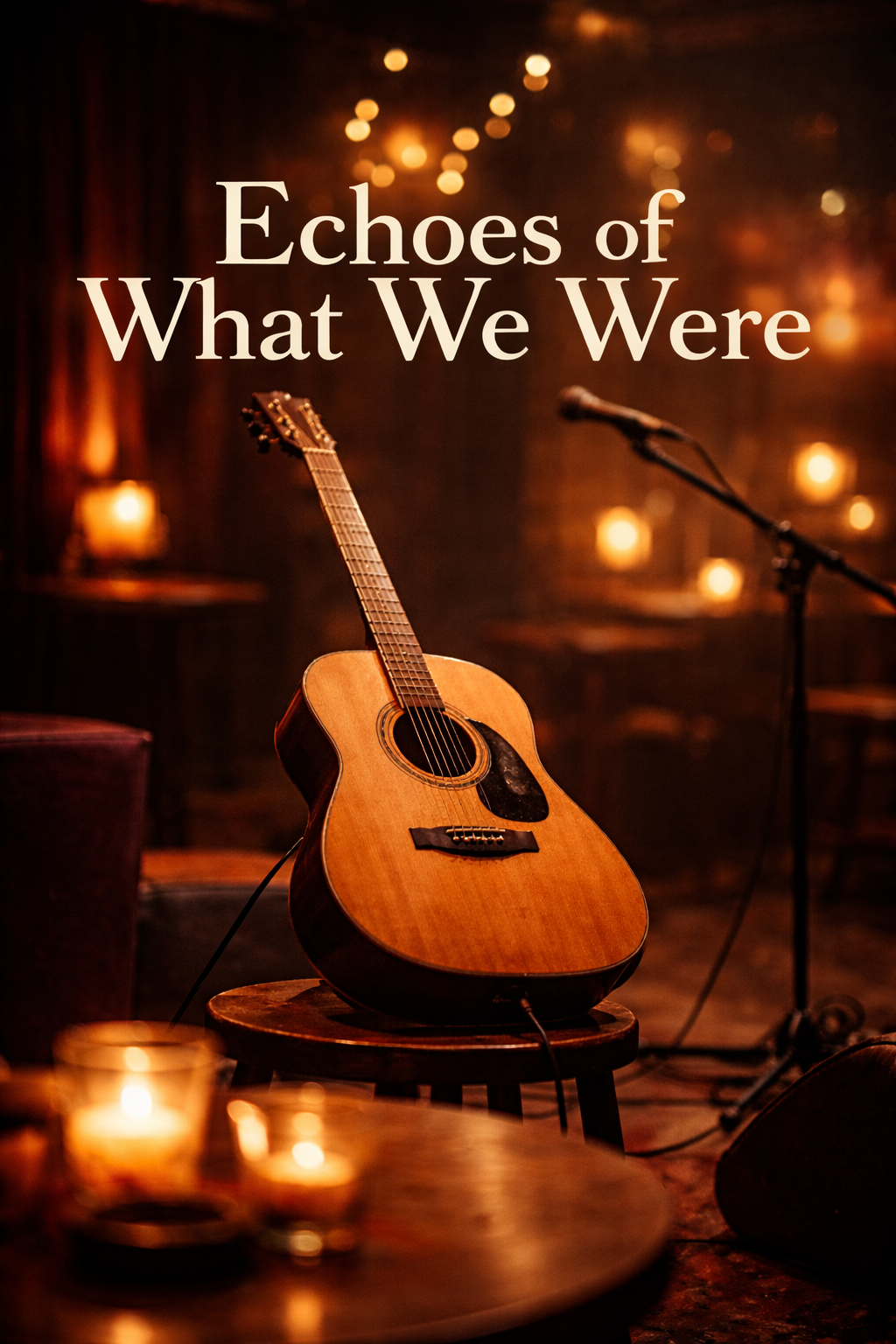 Live acoustic performance in a small, intimate club, Male vocal and solo steel-string acoustic guitar, Melancholic, introspective acoustic rock, 1970s singer-songwriter inspired, Slow tempo (~72 BPM), Fingerpicked verses, very soft strumming in chorus, No drums, no bass, Vocal: warm, fragile, close-mic, slightly raw, natural breathing, Quiet seated audience, subtle room ambience, Mood: intimate, nostalgic, existential, late-night, Minimal processing, natural room reverb, Language: English, Theme: illusion, loss of identity, fading memories