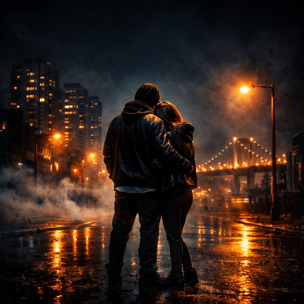 Melodic Hip Hop, 808-heavy, deep cinematic sub-bass, smooth layered piano loops with subtle reverb tails, airy wide synths, atmospheric pads, mid-tempo around 92 BPM, Rap-sung vocals with soft melodic undertones in the hook, intimate and heartfelt delivery, storytelling about support and loyalty, guiding someone through struggles and darkness, Punchy drums, crisp hi-hats, spacious stereo image, polished modern mix, reflective and comforting tone, uplifting yet vulnerable energy, nighttime city vibe, raw emotion with cinematic textures, perfect for a heartfelt track expressing reassurance and “I got you” commitment