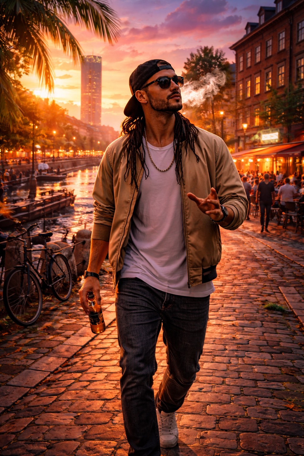 Create a raw, urban, gritty Swedish reggae track with a deep, soulful groove, Tempo 70-80 BPM with classic reggae offbeat rhythm, punchy but warm drums, deep dub-style bass, skanking guitar, and subtle organ/piano chords, Vocals by Swedish male, confident, playful, and expressive, delivering the lyrics with swagger, storytelling, and street attitude, Include ad-libs like “oh yeah” and melodic shouts to give a live, street energy, The mix should feel organic, slightly dusty, with ambient city sounds, faint crowd noises, and layered percussion for texture, Mood is bold, urban, funky-reggae, unapologetically confident, with space for groove, improvisation, and melodic variation, Emphasize Malmö vibe without overusing the city name, keeping it poetic and soulful