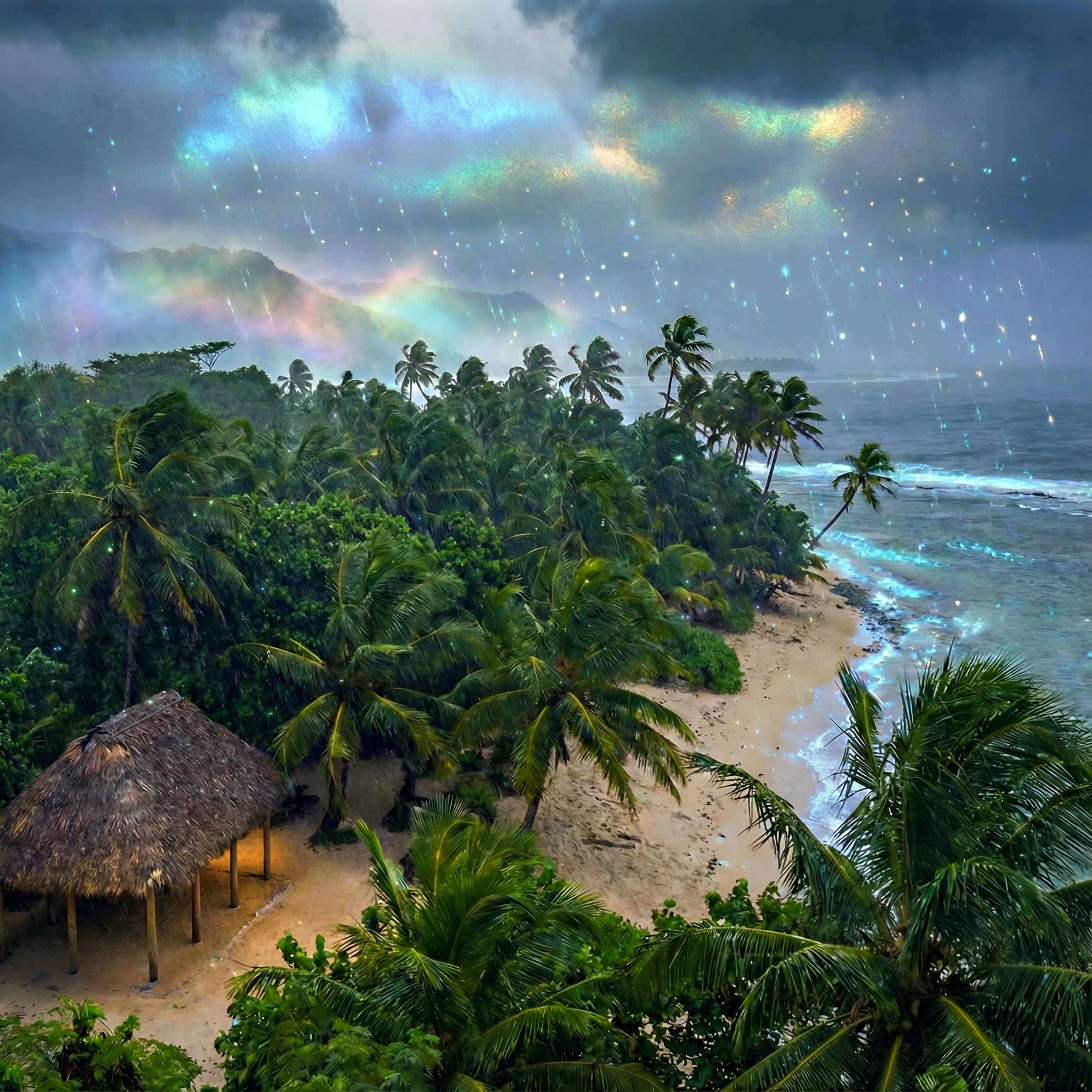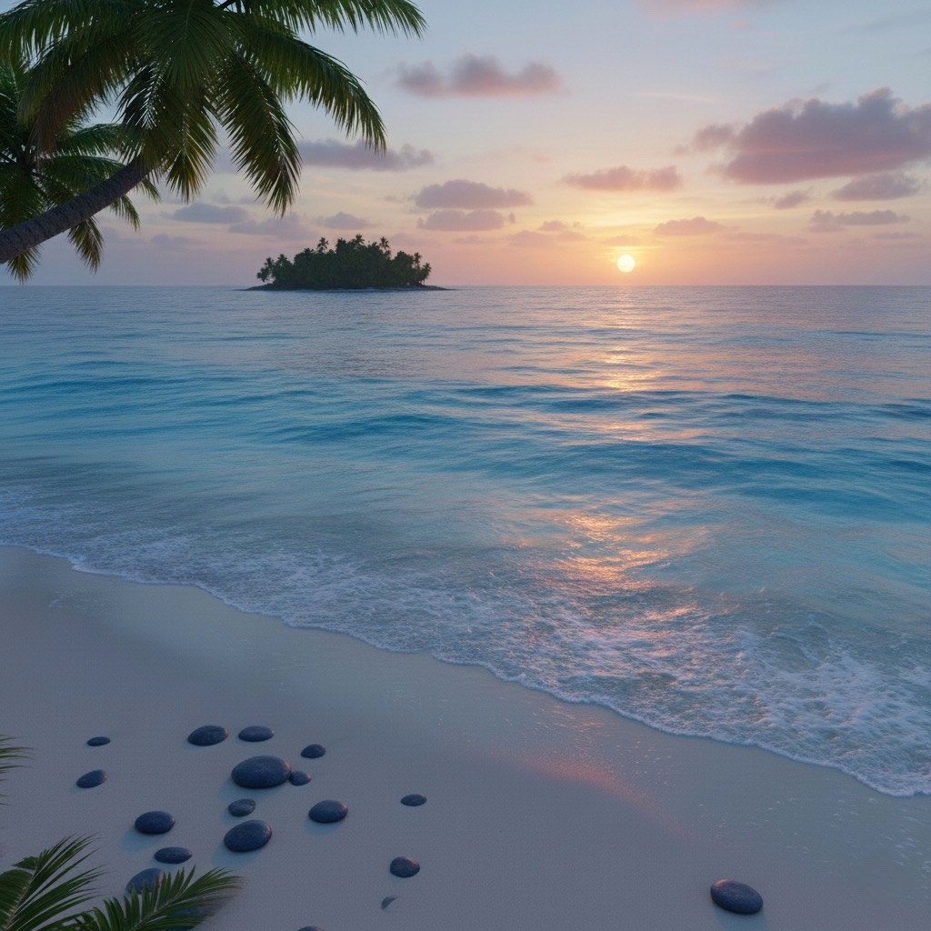 soothing, relaxing, lush soundscapes with airy synths, beautiful, soft percussion, and warm basslines, a relaxing vibe with uplifting melodies and an expansive, breathtaking atmosphere, breathtaking, tropical house