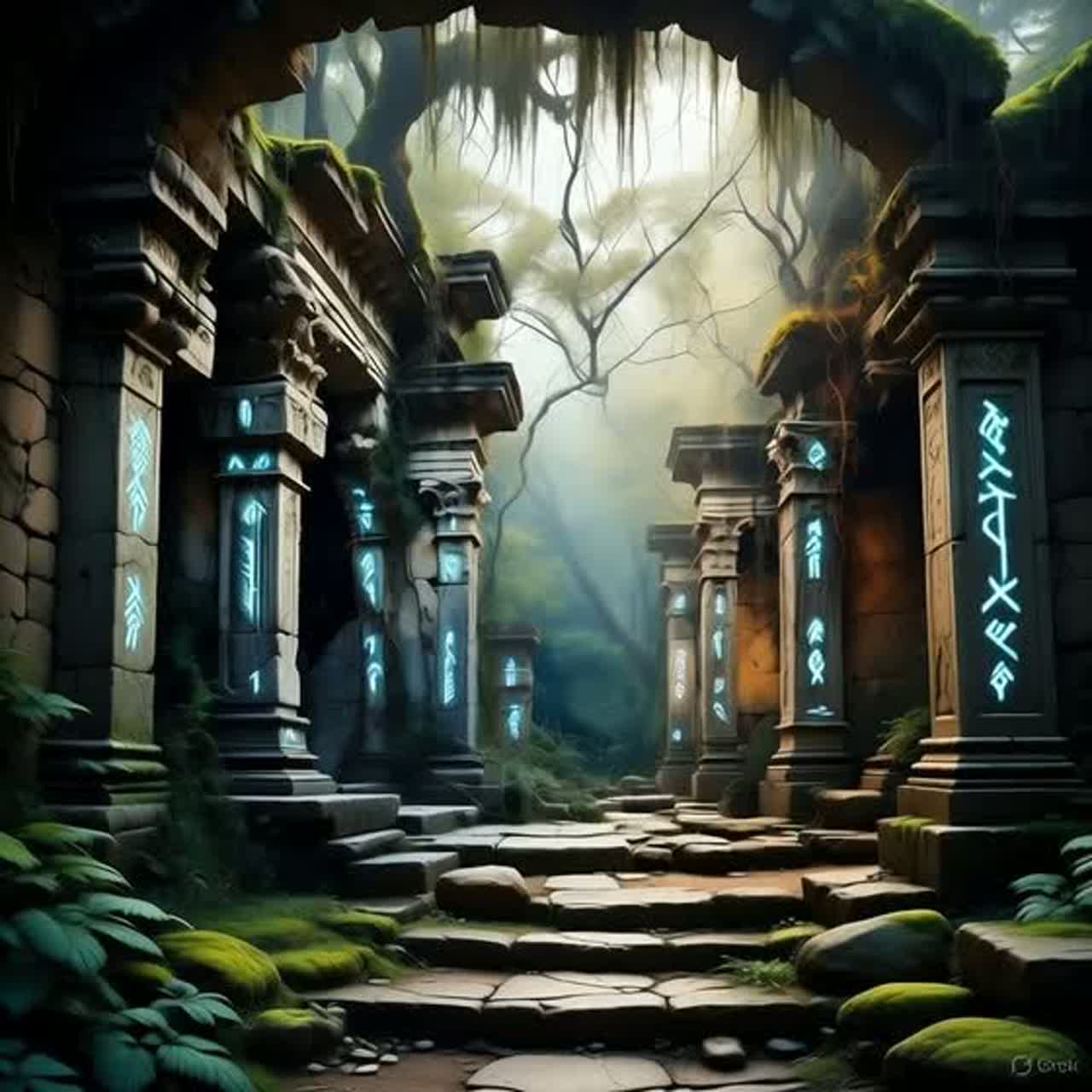 Cinematic classical-electronic hybrid instrumental only with no vocals, Mood: From dormant mystery and somber ancient ruins to triumphant rebirth and epic revival with emotional arc of awakening myths, Instrumentation: Gregorian chant-like strings as lead with epic brass support and glitchy synth swells and arpeggios and pads fused with tribal electronic percussion and pulses, Tempo: 70-110 BPM with accelerando builds and ritardando fade, Production: Extremely high fidelity recording with professional sounding mastering and polished mix with wide stereo imaging and warm analog warmth and ethereal reverb tails and light glitch effects for mythic vibe and dynamic crescendos and decrescendos