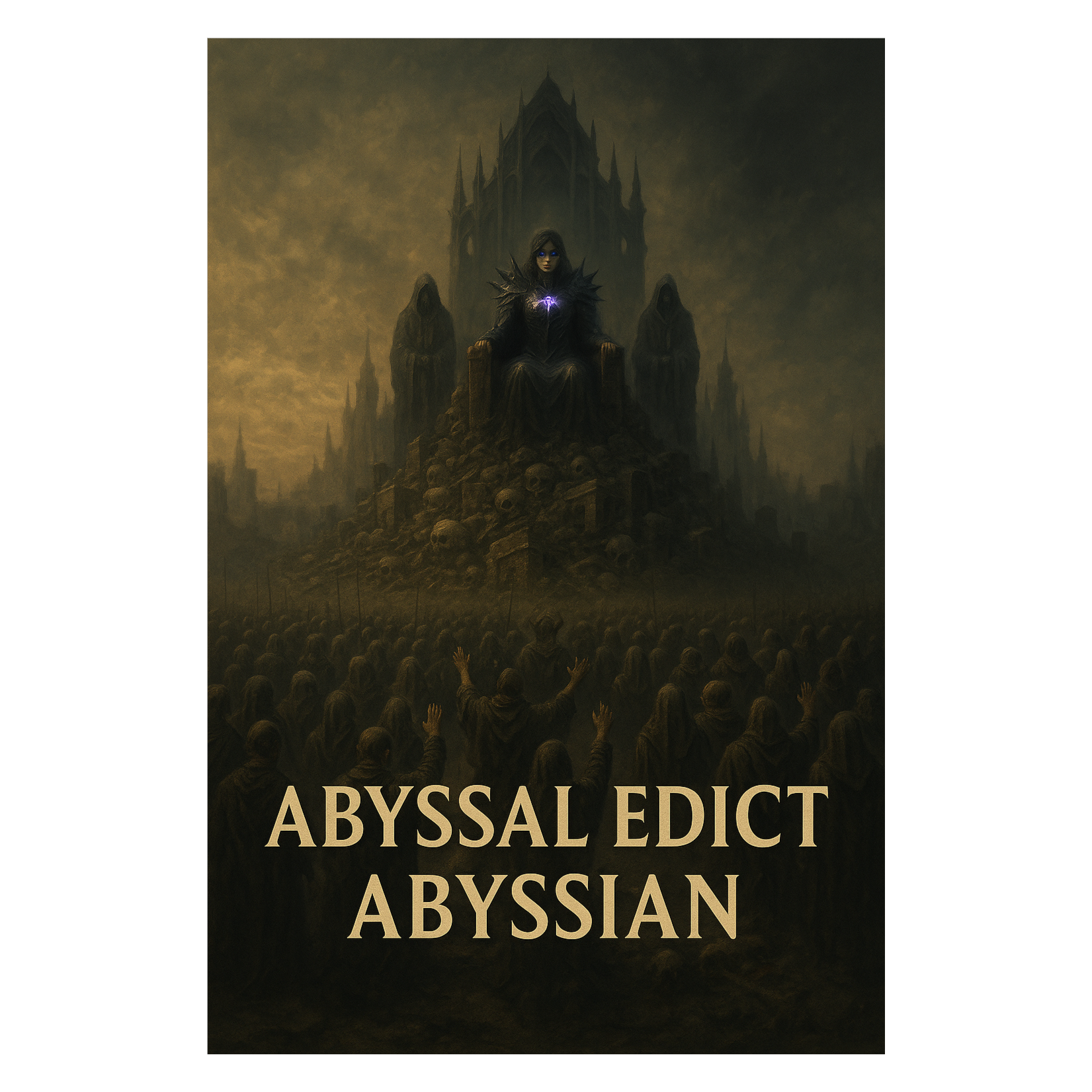 Abyssian’s arrival resounds like the death of creation itself, The music opens with a colossal cathedral choir — thousands of voices in impossible harmony, rumbling beneath mountains of sub-bass, Each note feels ancient, heavy with godlike wrath and reverence, Metallic chants weave with demonic throat singing, echoing across endless cosmic ruins, The atmosphere is oppressive, divine, and unrelenting — a hymn of submission and terror as the void’s true monarch descends to claim dominion over existence