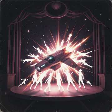 dark progressive space rock, haunting high-pitched male falsetto, minor key, sinister fuzz bass, eerie arpeggiated synths, heavy distorted riffs, cynical theatrical rock, dramatic brooding atmosphere, slow build to chaotic climax, gloomy, melancholic shoegaze