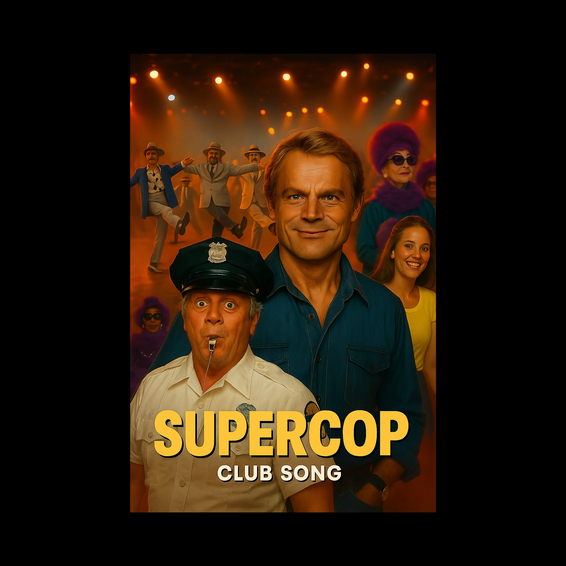Kicking off with punchy synth stabs and a syncopated, rubbery funk bass groove, the song features tight drum machine beats and wah-soaked rhythm guitar, Verses are carried by Falco-style Sprechgesang: energetic, Viennese-accented, witty spoken vocals with comedic flair, The chorus explodes with bright synth chords, layered handclaps, and the hook “Drück net auf stu-u-u-umm – schau, schau / da Kommissar geht um!”—the "stu-u-u-umm" stretched theatrically, Dramatic spoken interludes and streetscape sound effects intensify the urban, mischievous vibe, Crisp brass stabs accent key transitions, while the groove keeps feet moving throughout