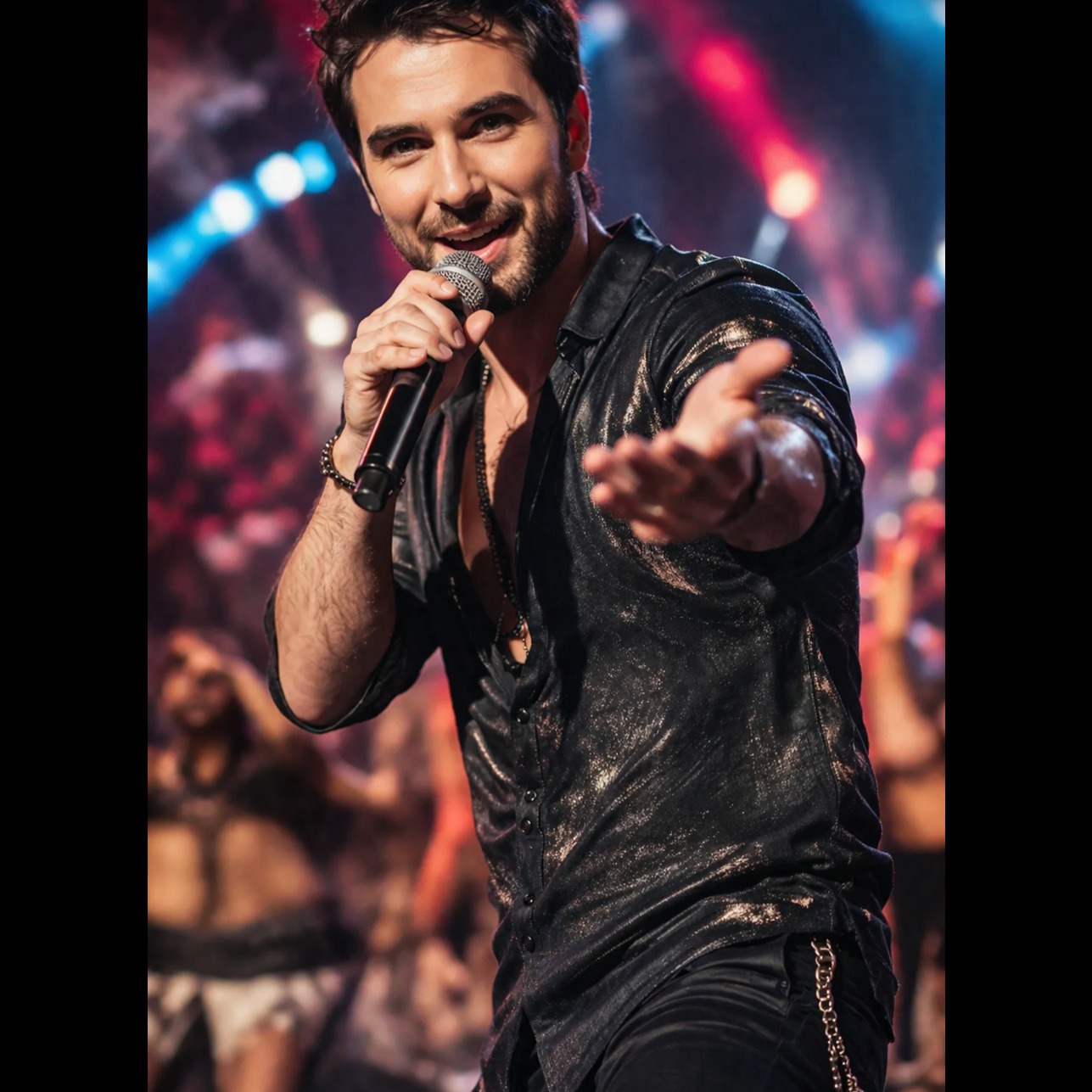 Turkish pop, maqam nahawand, 100 BPM, darbuka shuffle, male lead vocal, 90s pop hook, oriental string ensemble, synth bass pulse, electric piano stabs, muted guitar chops, hand percussion fills, crisp vocal compression, plate reverb, wide stereo mix, playful flirtatious, chorus repetition, syncopated groove