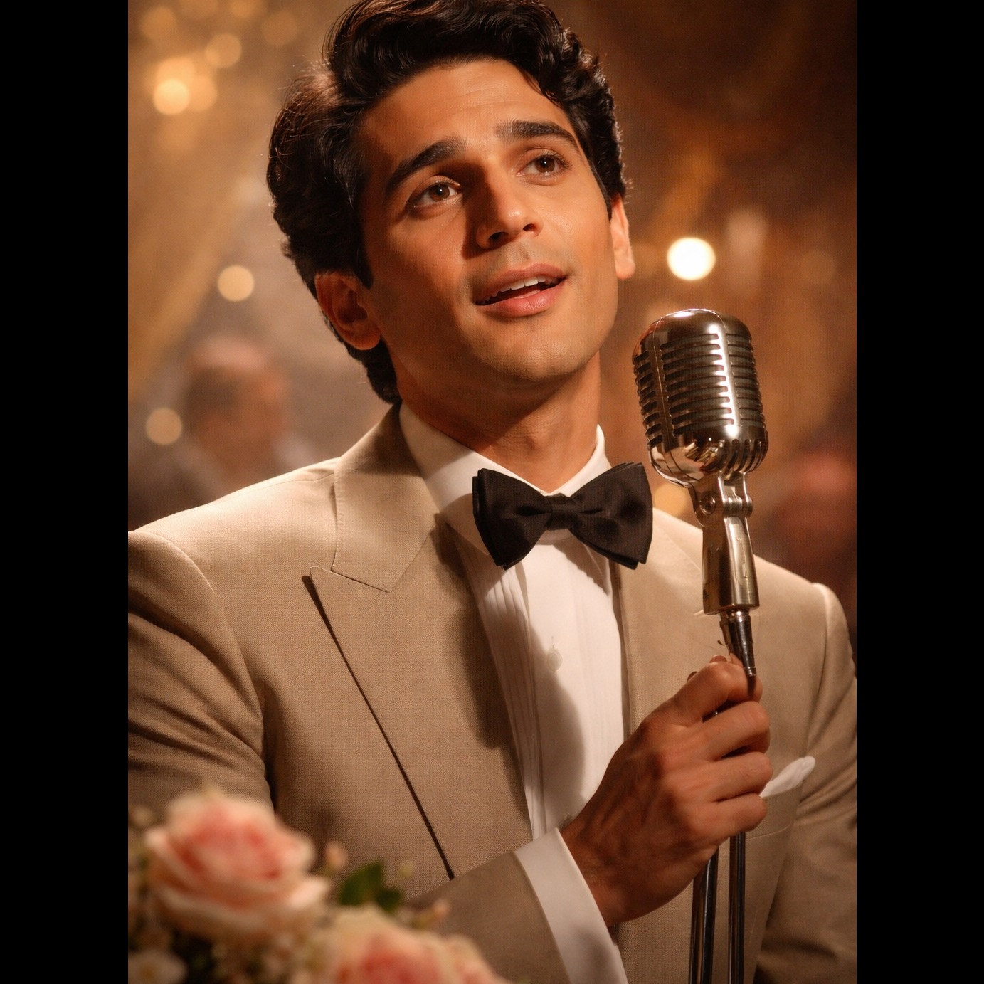 bollywood retro, 1960s romantic orchestral, maqam nahawand, 74 BPM, lush string sections, brushed drums, soft tabla, electric guitar fills, accordion textures, close-mic male vocal, subtle plate reverb, analog tape warmth, narrative verses, flowing chorus, sensual pauses, end rhyme repetition, intimate yearning, gradual build, warm mono center