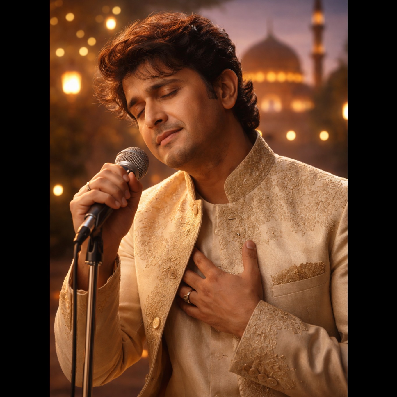 bollywood ghazal pop, Urdu poetic couplets, maqam nahawand, 74 BPM, male lead vocal, rich vibrato, expressive melisma, orchestral strings, piano arpeggios, soft tabla, bamboo flute fills, tanpura drone, cinematic chorus lift, intimate verses, spacious hall reverb, tape saturation, minor key, slow expressive groove