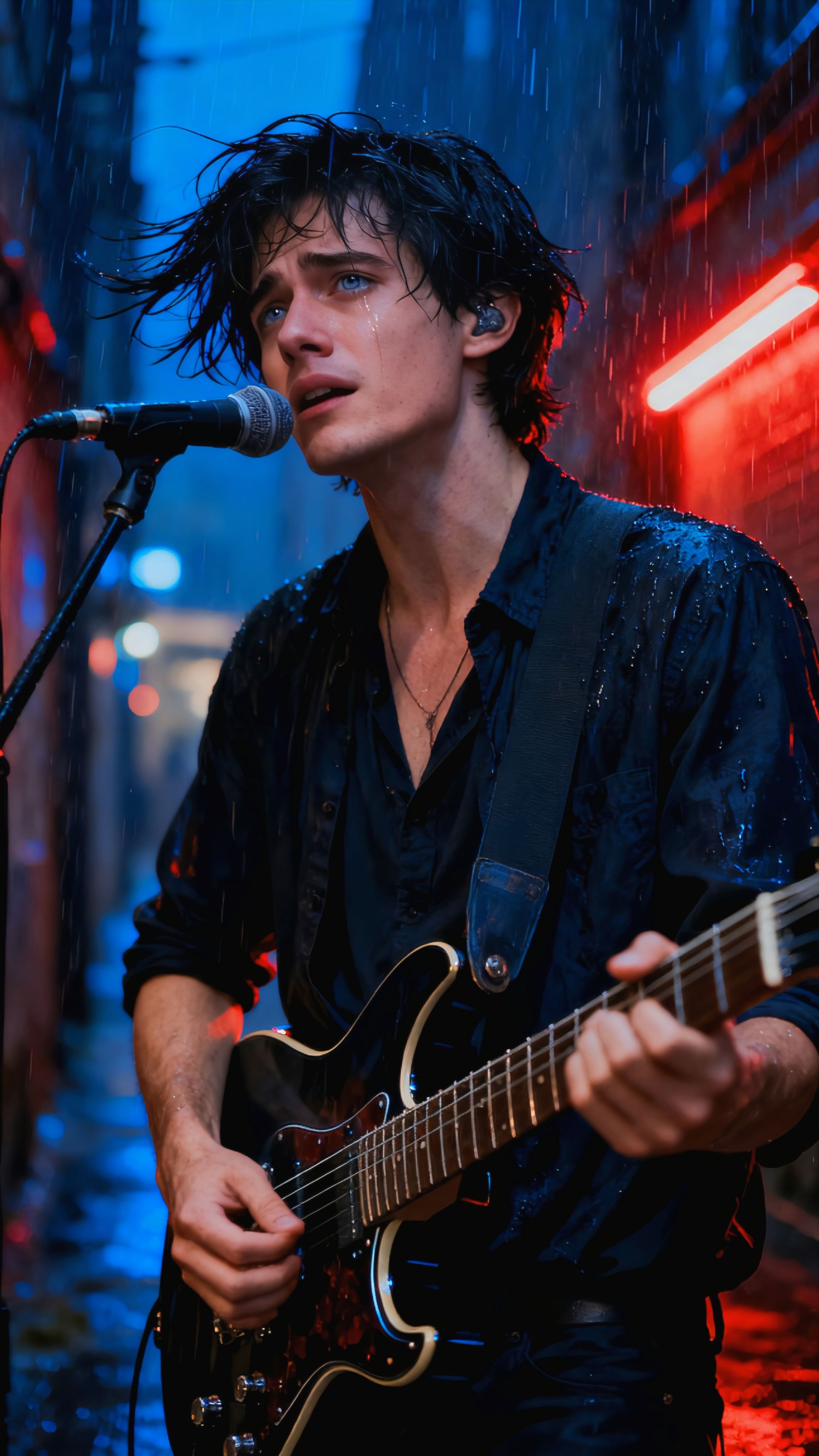- Electric Guitars (Lead + Rhythm): Crunchy overdrive, atmospheric reverb, moody riffs, steady down‑strums, - Bass Guitar: Dark, punchy, glued to the kick, - Drums: Tight snare, deep kick, crisp hats, steady mid‑tempo pulse, - Atmospheric Layers: Subtle ambient guitar swells, minimal synth pad for depth, - Vocals: Gritty male lead, emotional bite, doubled in key moments, raw and unpolished